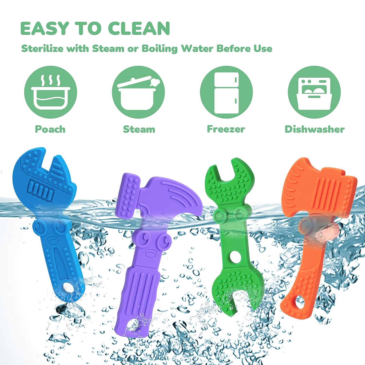 TYRY.HU Baby Teething Toys for Babies, Baby Teether Toys, BPA Free Silicone Baby Molar Teether Chew Toys, Hammer Wrench Spanner Pliers for Boys Girls, Soft-Textured, Easy to Hold & Clean, 4 Packs