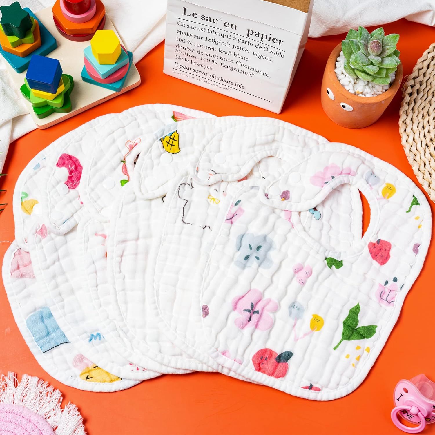 - Absorbency: Our bibs is designed with 6 layers of cotton cloth, which can effectively collect and absorb liquid, help keep baby's clothes and skin dry, suitable for infants, newborns and toddlers.