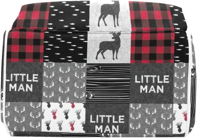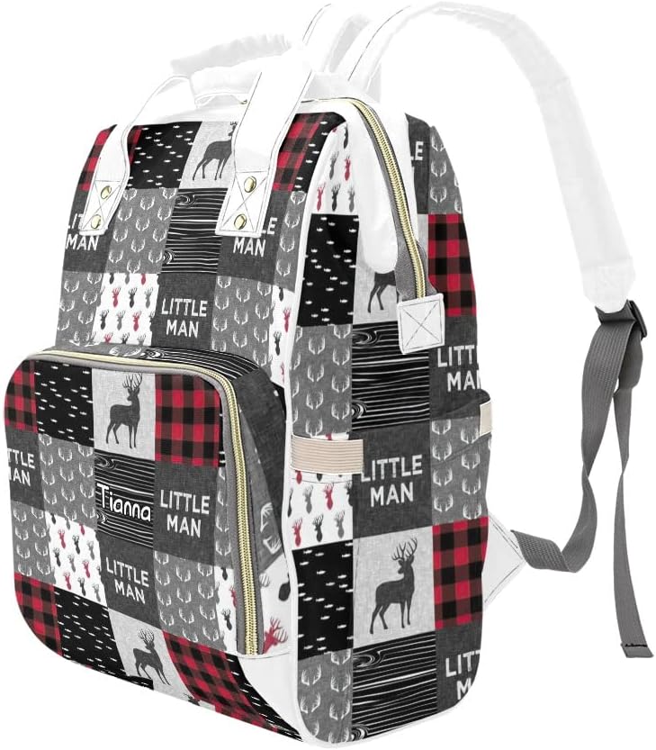 Antler Little Man Red Woodland Plaid Diaper Bags with Name Waterproof Mummy Backpack Nappy Nursing Baby Bags Gifts Tote Bag for Women