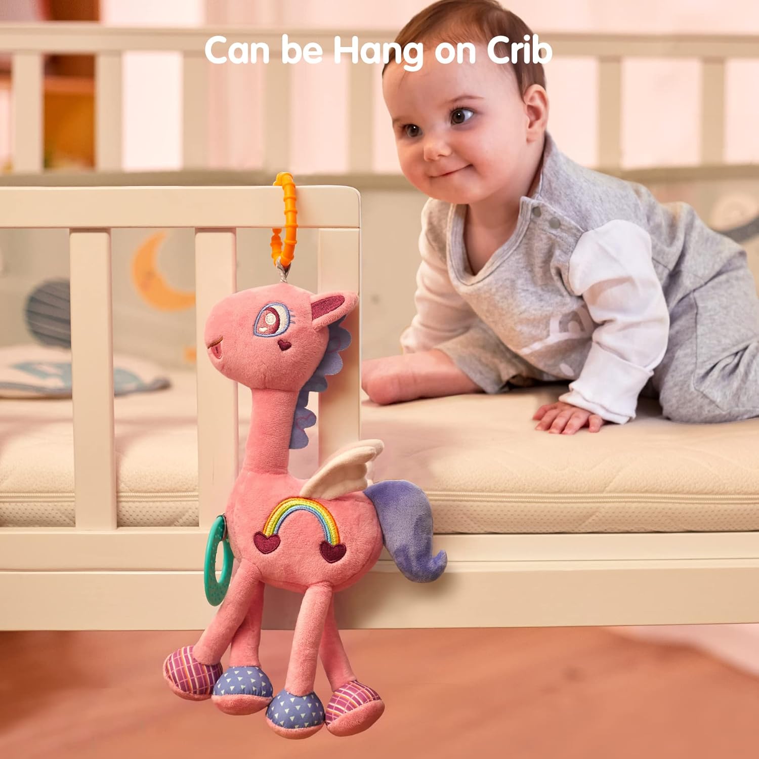 - 【Improving Baby's Hearing】This Lovely plush animal wind chime built-in rattle.The rattle makes fantastic sound when this stroller toys shaking, attracts baby's attention very easily, train baby's hearing.