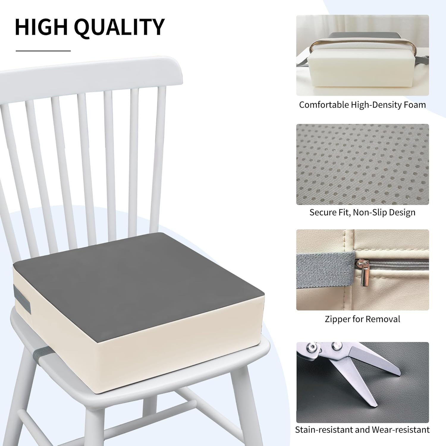 - Easy to clean: The booster seat cover is made of PU leather. It is waterproof and easy to clean. If food accidentally falls on the booster seat, just wipe it with a rag. The dining chair cover booster cushion is also machine washable and removable. But the vast majority of the time there is no need to clean, just wipe gently with a damp cloth to restore cleanness