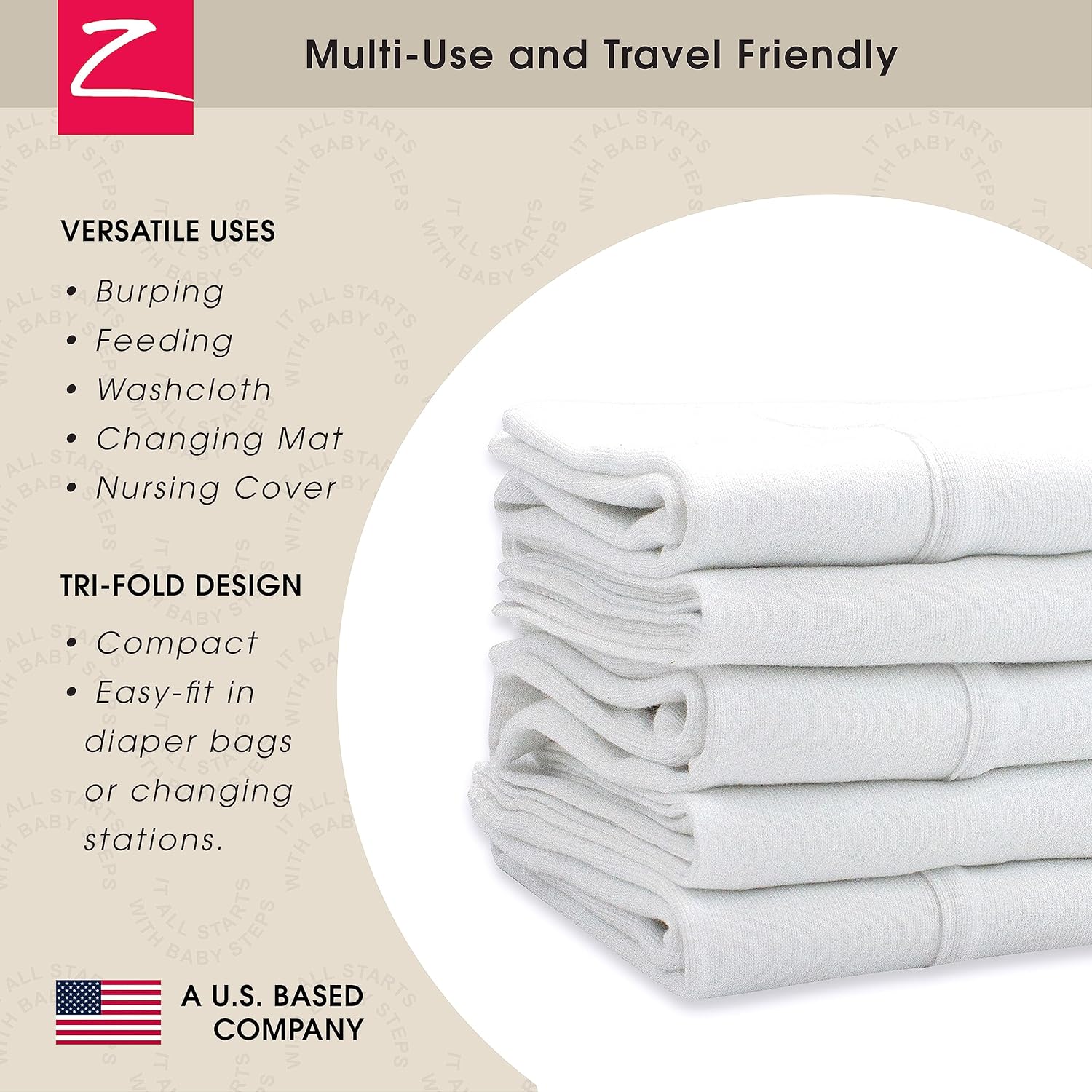 - Multi-Use and Travel Friendly - These burp clothes are perfect for every day messes: Drool, spit up, milk dribbles, impromptu changing mat, feeding time and many more uses! The trifold design creates a compact fold to easily fit in diaper bags or changing stations.