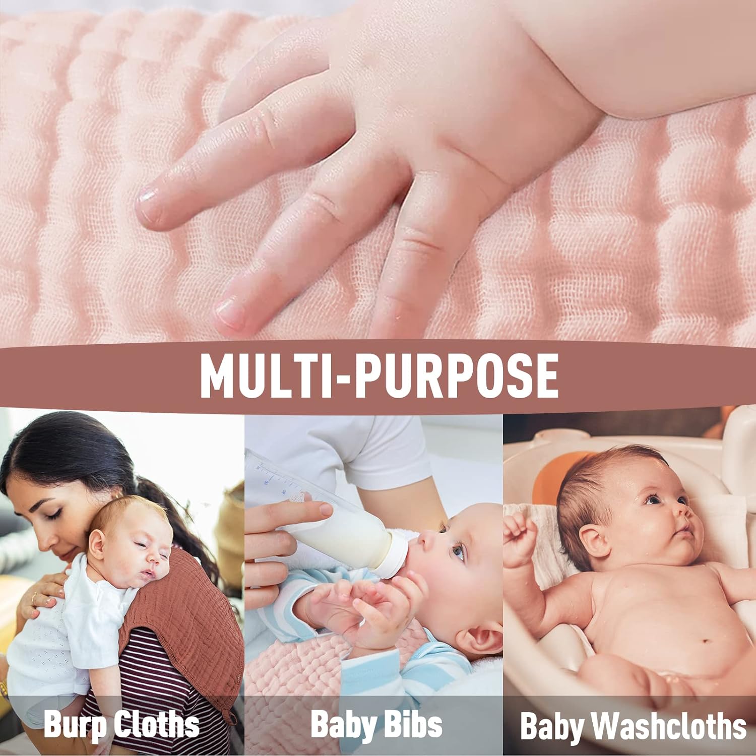 - WIDE APPLICATIONS: The baby muslin cloths can be applied as burp rags, baby bibs, baby washcloths and towels, baby wipes or cloth diapers, a must-have for burping, teething or spitting up!