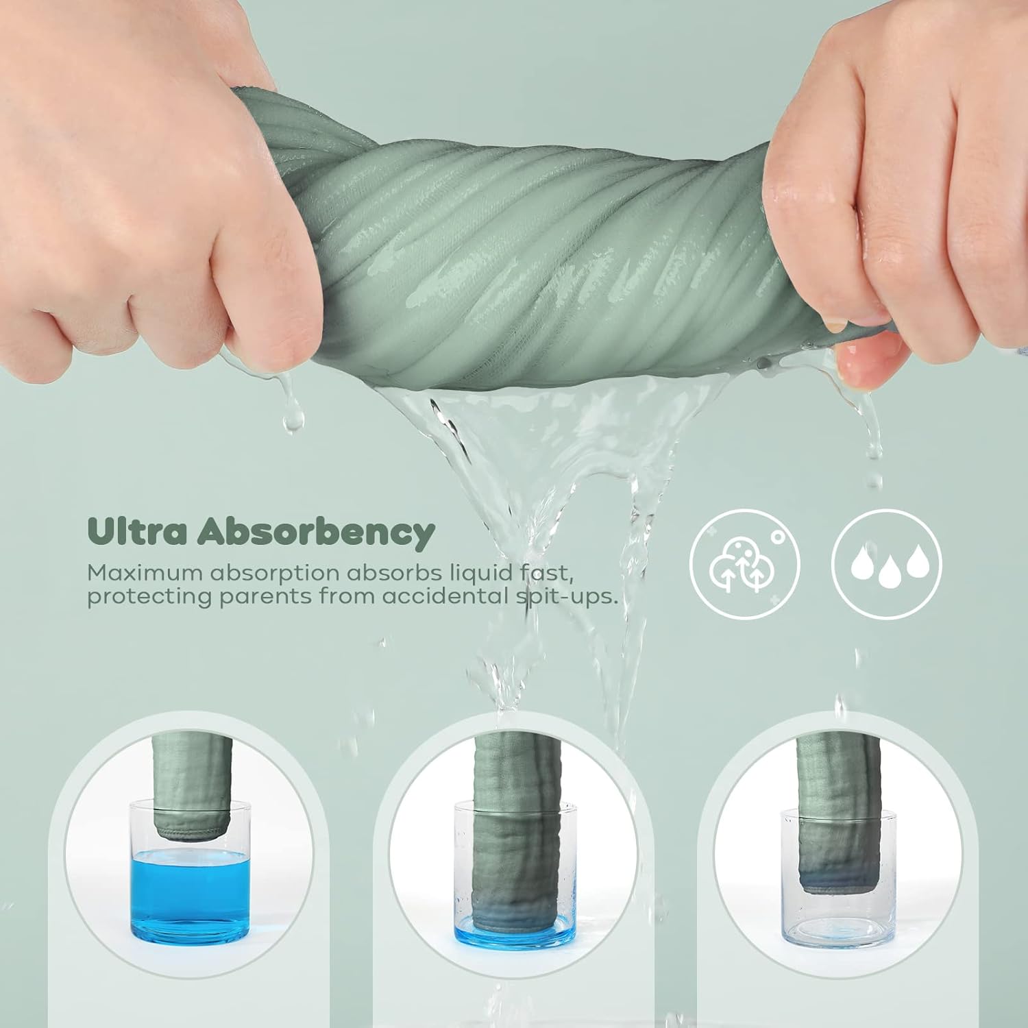 Yoofoss Muslin Burp Cloths for Baby 10 Pack 100% Organic Cotton Baby Washcloths for Boys Girls Large 20''X10'' Super Soft and Absorbent Gradient Green