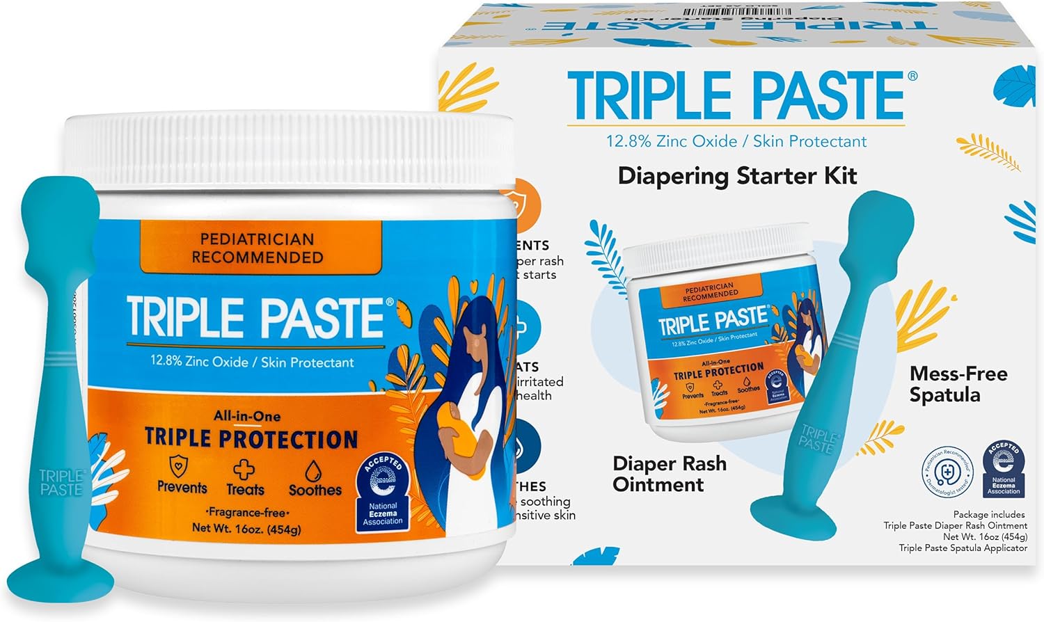 Triple Paste Diaper Rash Cream and Spatula Bundle - 16 oz Zinc Oxide Ointment and Spatula Treatment, Soothe and Prevent Rash with a Pediatrician-Recommended Hypoallergenic Formula
