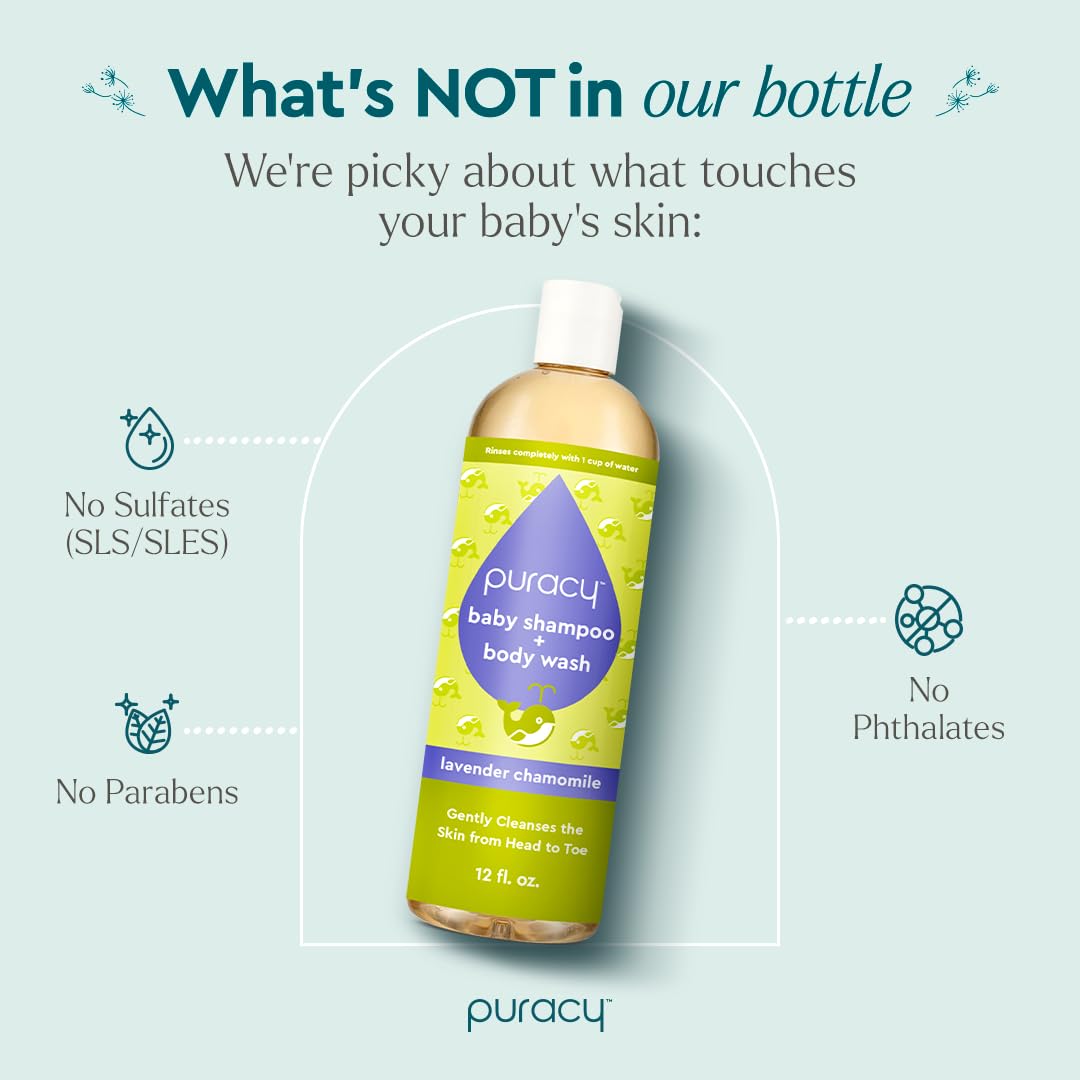 Puracy Baby Shampoo & Body Wash for Children - Pure Ingredients with 12 Fruit & Vegetable Extracts for Silky Smooth Skin, Gentle Lavender Chamomile Aroma, Baby Shampoo, Baby Body Wash 12 Oz (2-Pk)
