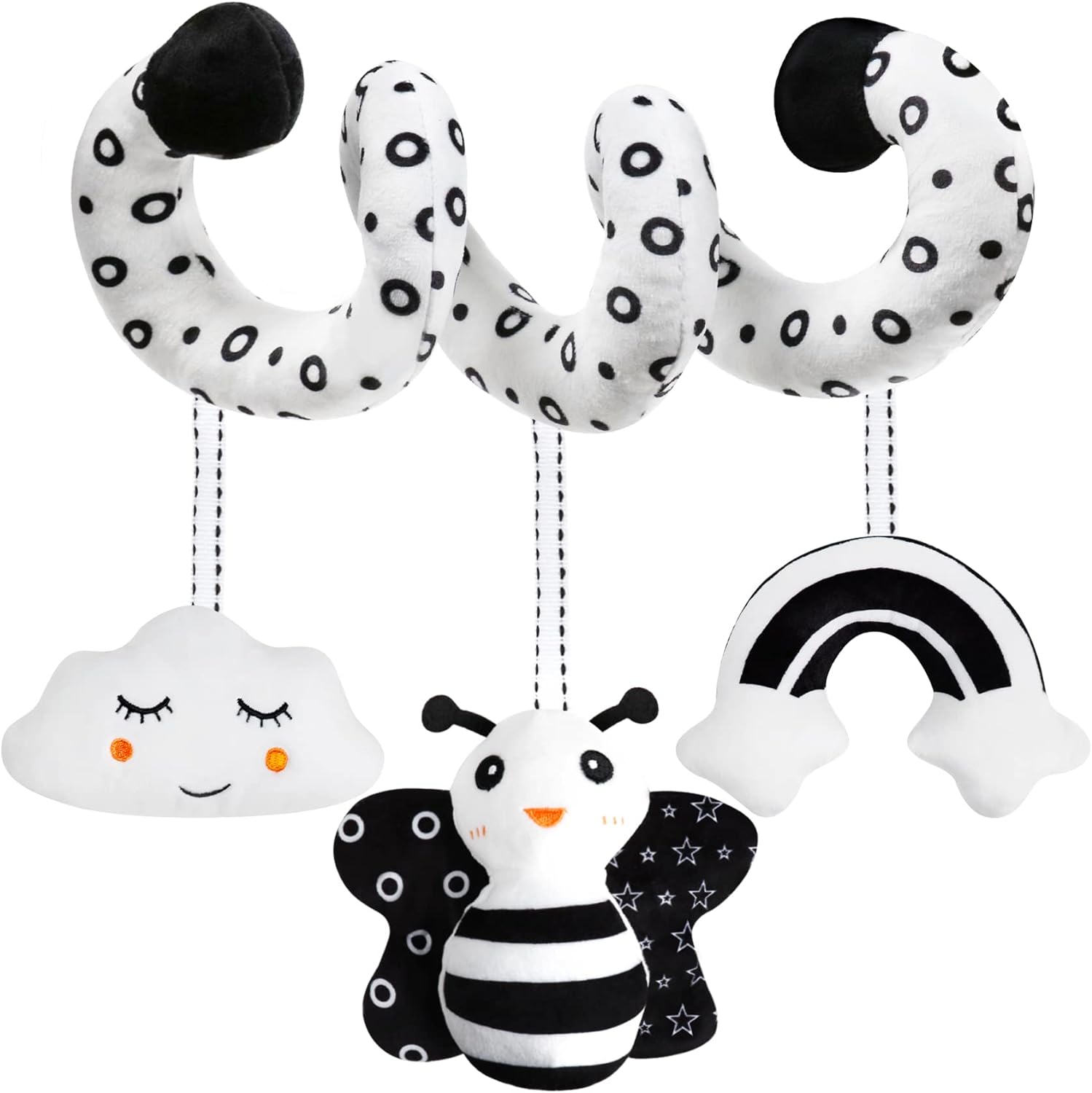 Baby Spiral Hanging Stroller and Car Seat Toys Black and White High Contrast Sensory Toy Newborn Plush Activity Toys Party Favors Quality Gifts for Baby Shower -BEE