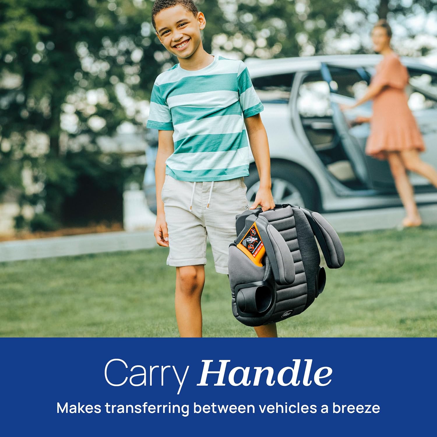 - BUILT-IN CARRY HANDLE — Easy to transfer the child booster seat from vehicle to vehicle. This model does not have LATCH attachment. See GoFit Plus Backless Booster for the same booster with LATCH attachment plus quick-release LATCH removal.