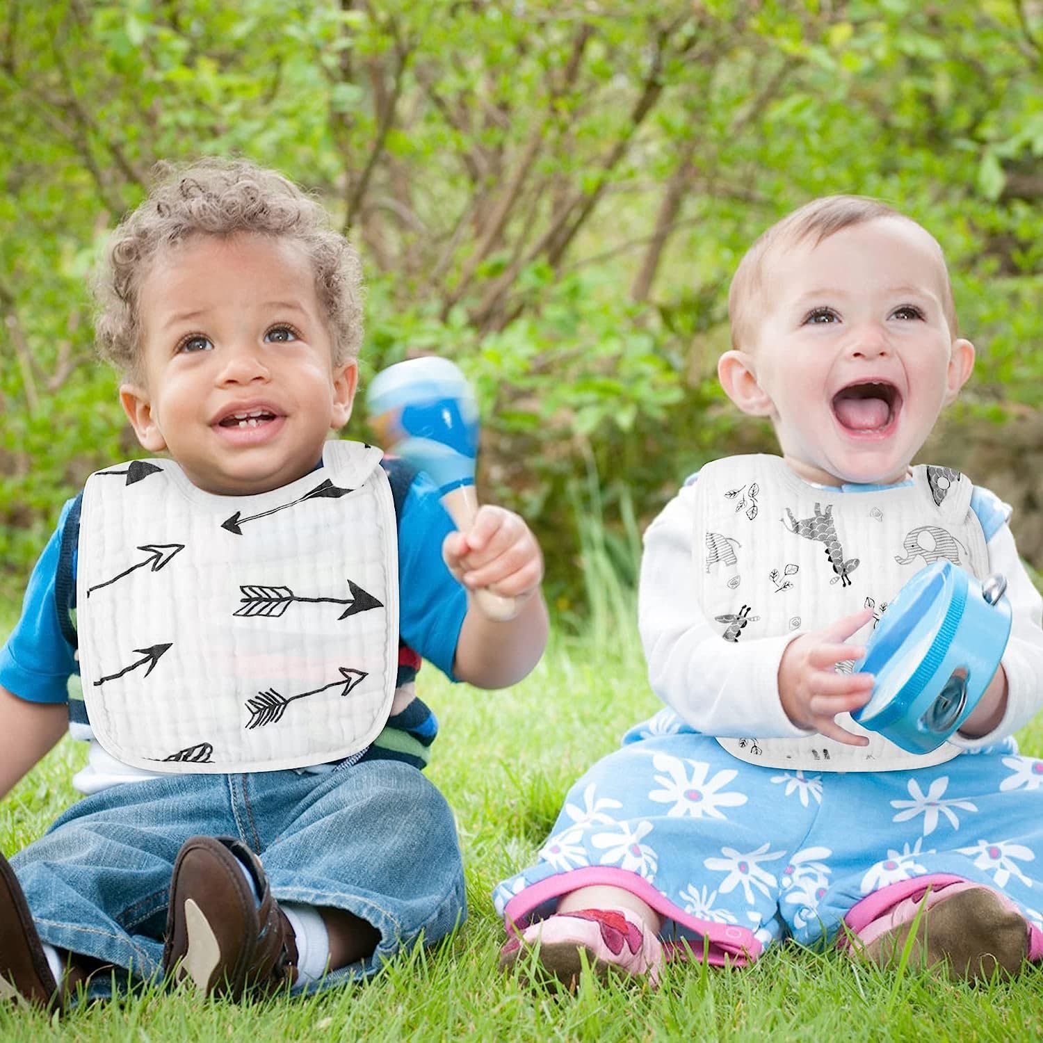 - Unique Design: You will get 6 different styles specially designed for your baby boy or girl. Each baby's bib has cute patterns such as heart arrows, triangles, arrows, feathers, plus signs and giraffes.