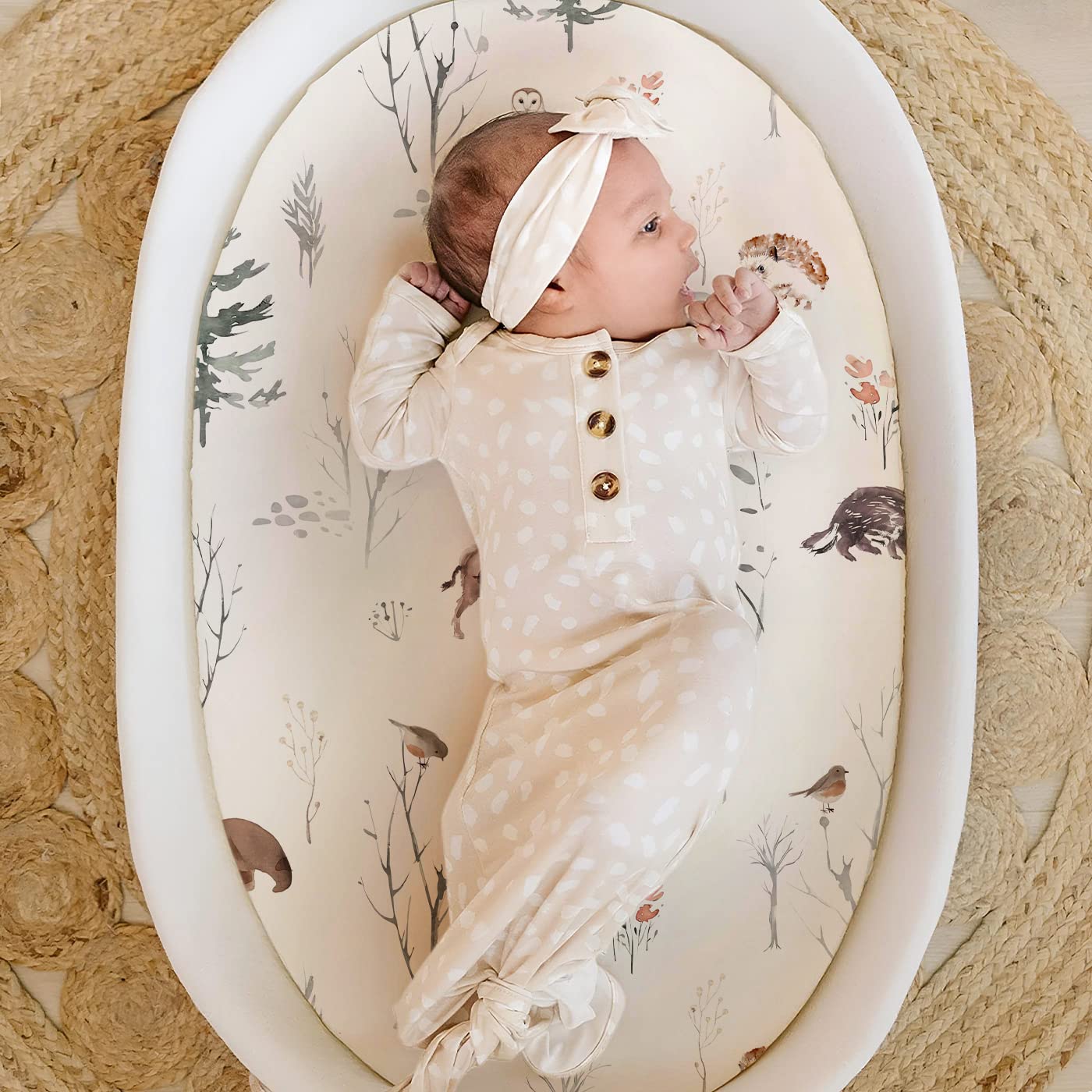 Stretch Ultra Soft Fitted Bassinet Sheet Set 2 Pack, Universal Fit for Bassinets Baby Cradle Moses Basket Oval Rectangle Mattress Safe and Snug, Stylish Pattren of Jungle Animals