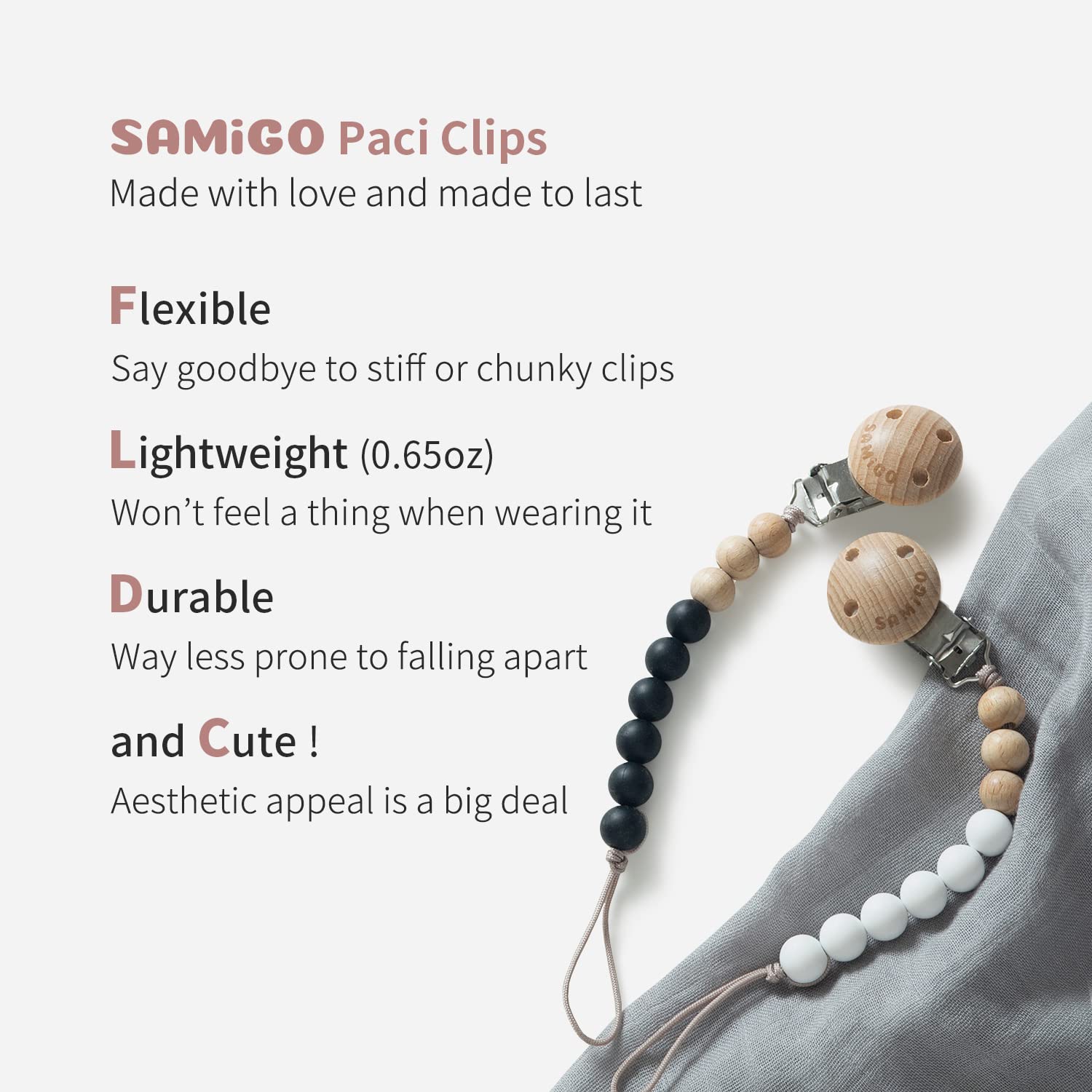 SAMiGO Silicone Pacifier Clips Holders Paci Binky Clips for Baby Boys and Girls - 2 Pack