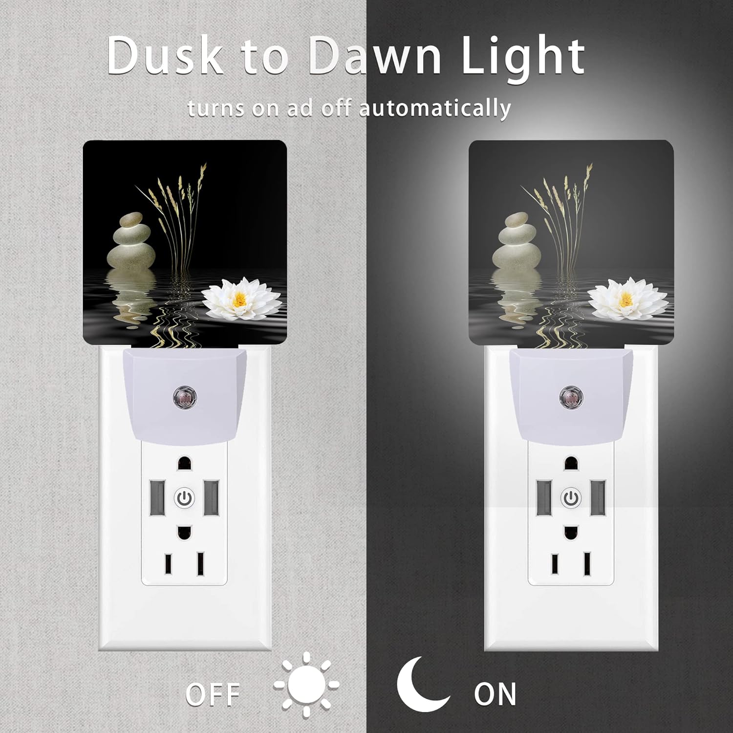Zen Spa Night Light,Grey Stones Lotus Night Lights Plug into Wall Dusk to Dawn Sensor Led Lamp for Women Men,Led Lights for Stairway/Hallway/Bedroom,0.5W