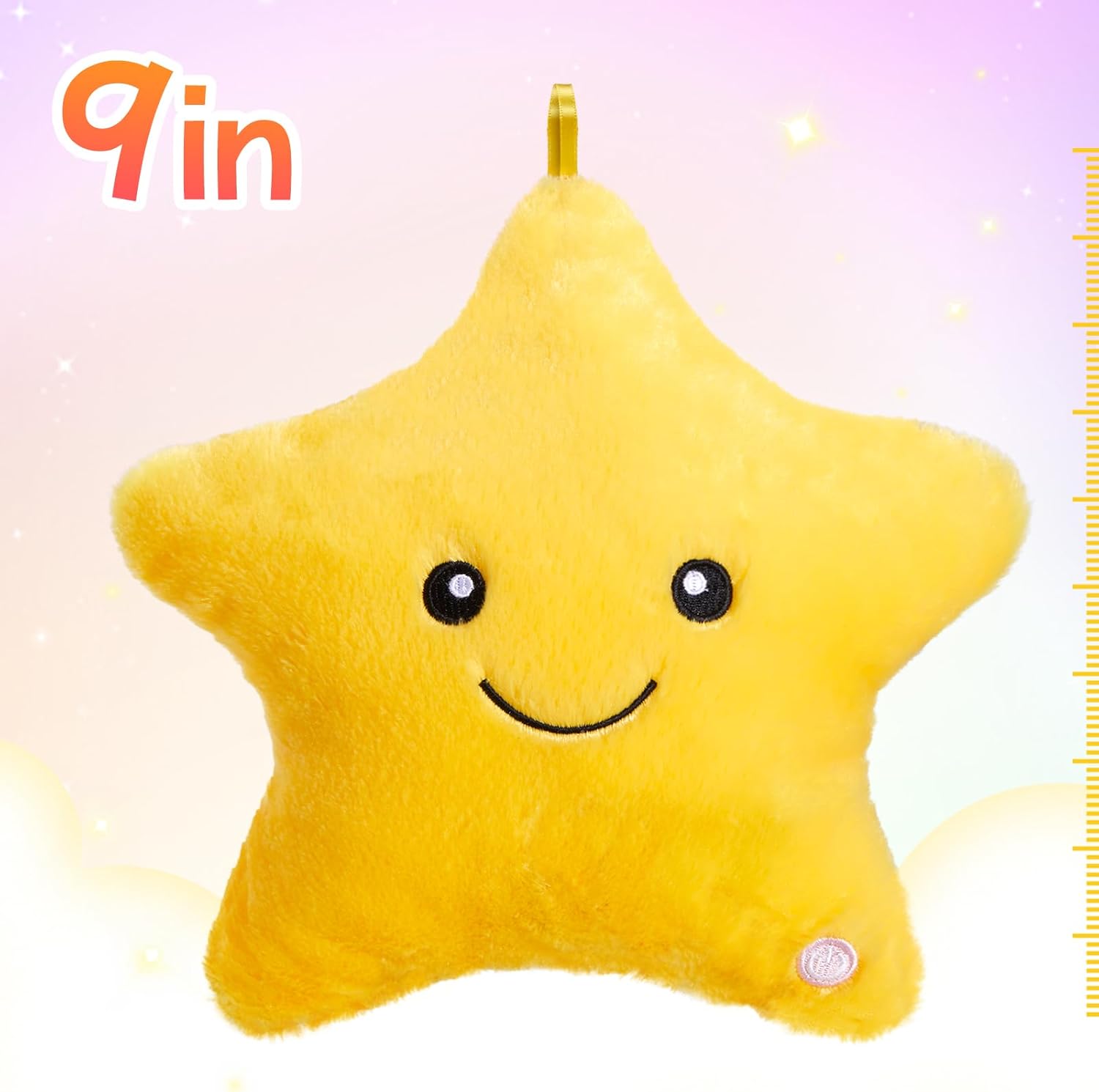 WEWILL 9'' LED Twinkle Star Soft Plush Pillow Toys Glowing Stuffed Star Light up Pillow Plush with Colorful Night Lights Birthday for Toddler Kids(Yellow)