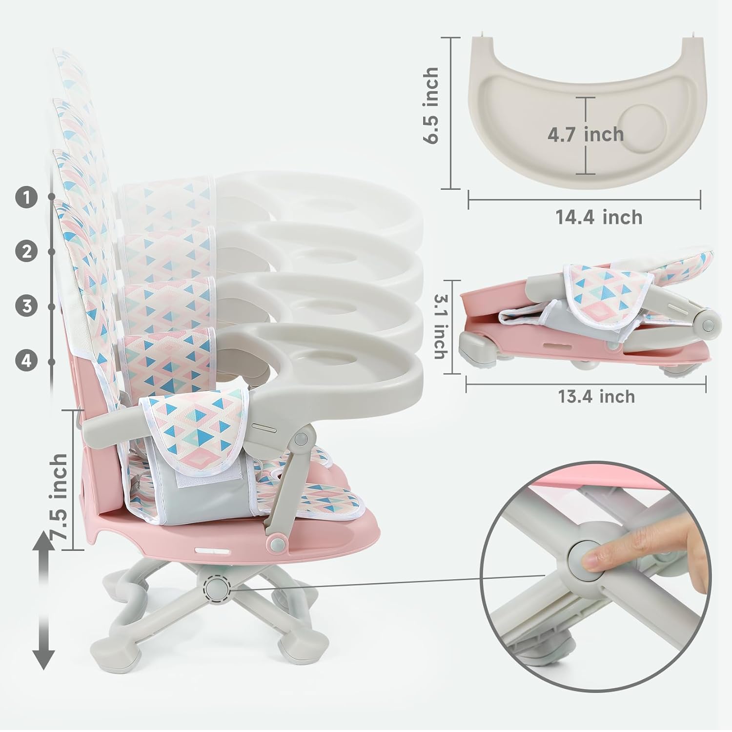 YOLEO Baby High Chair Booster Seat for Dining Table, Adjustable Height Travel Foldable High Chairs with Tray