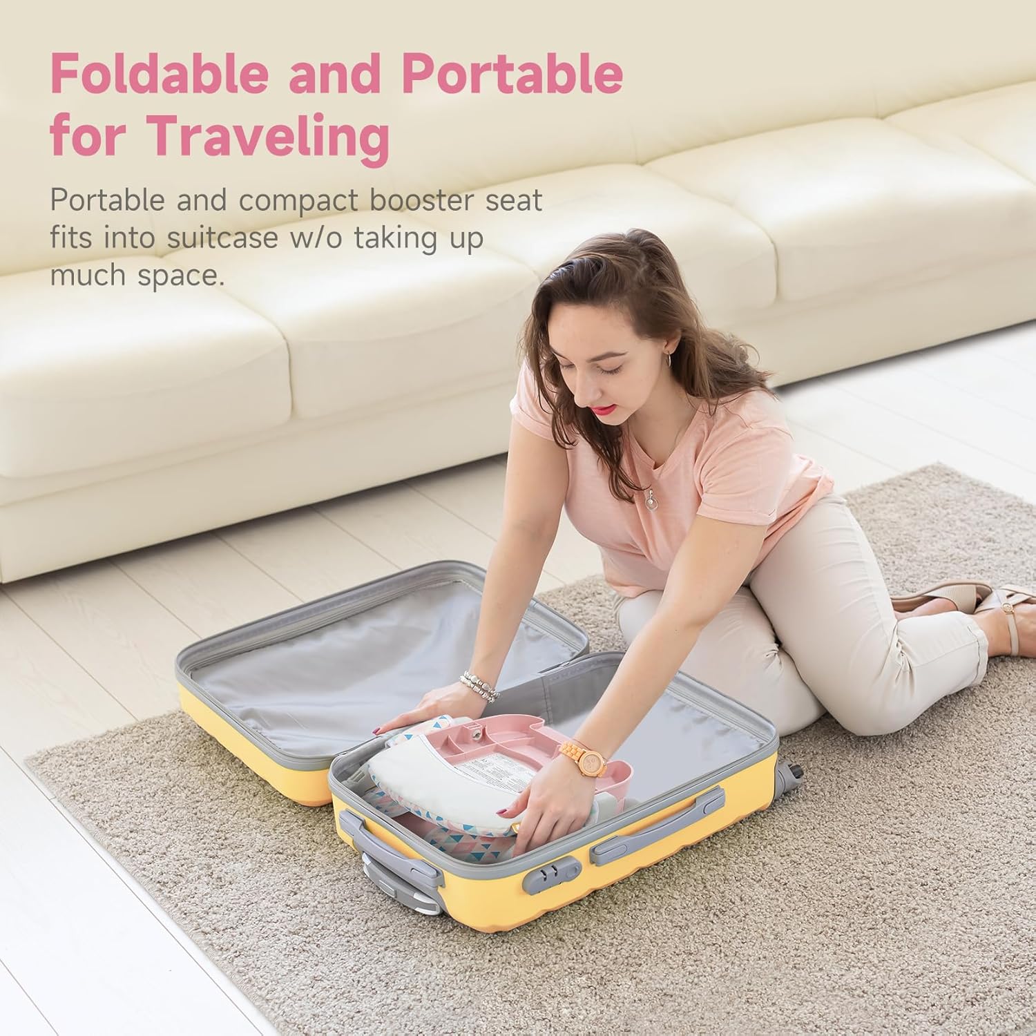 - 【Fold and Take it Anywhere】Travel high chair can be folds up nicely flat, fits into suitcase or travel bag. No longer have to have a big bulky high chair sitting around. Folding booster seat is Lightweight and great for traveling. Perfect choice to take it to restaurant, visiting to grandparent, camping.