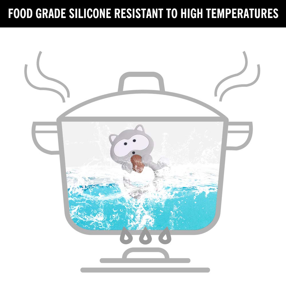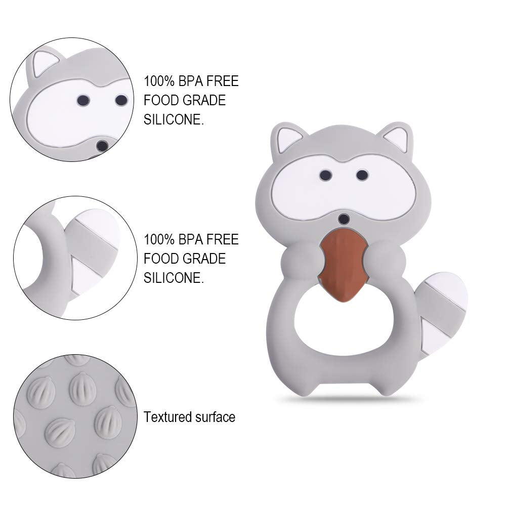 Baby Silicone Teether,Sensory Chew Toys,BPA Free Soft and Effective Infant Teething Pain Relief Toys,Freezer Safe,Food Grade Silicone,Best Shower Gift for Boys and Girls (Raccoon)