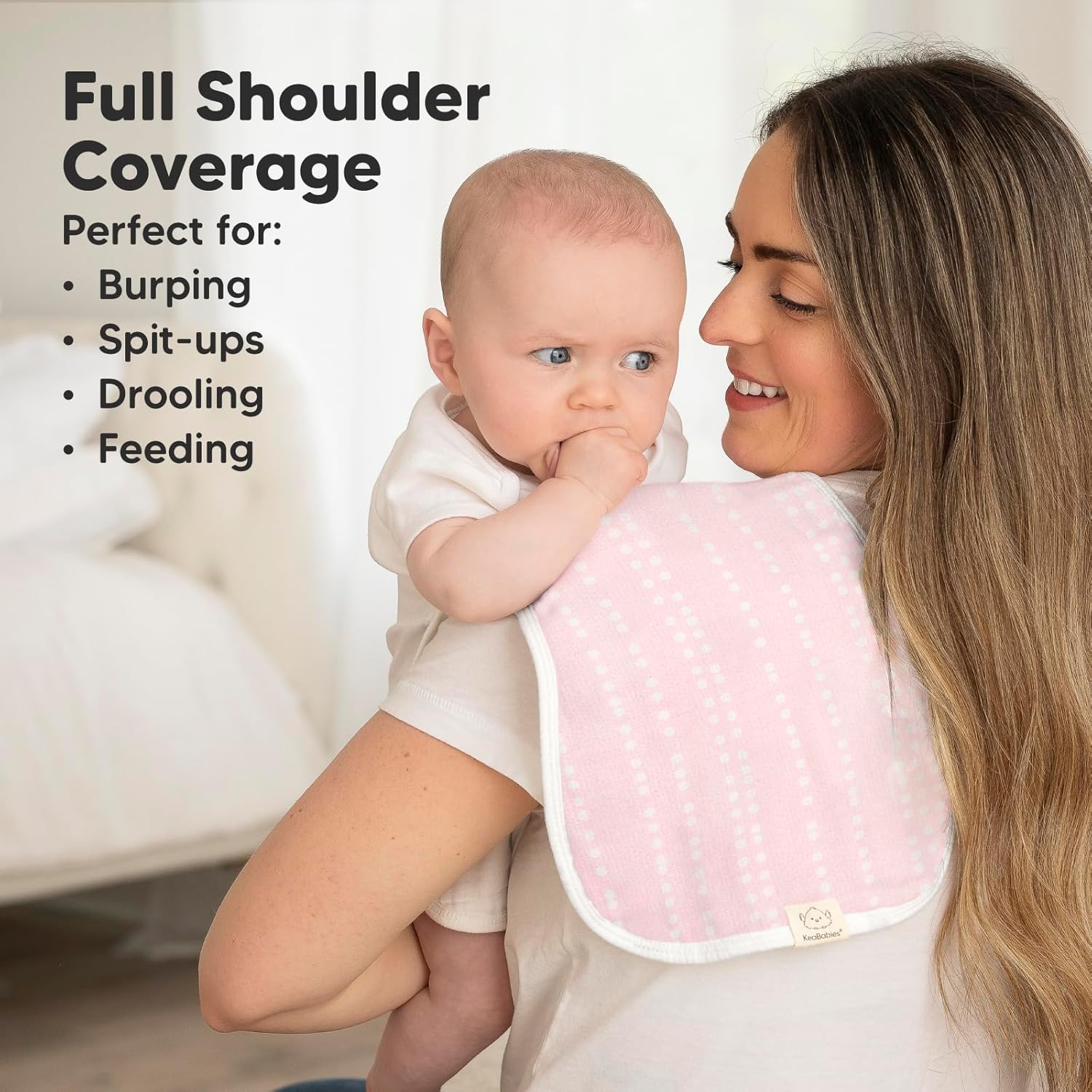 - Maximum Shoulder Coverage - Our burping cloths for babies are specially designed in figure-8 to ensure a secure fit, preventing the burp rags from slipping. Measuring 21" x 10", this neutral burp cloth provides ample coverage for your shoulders.