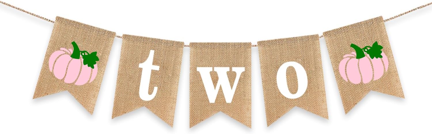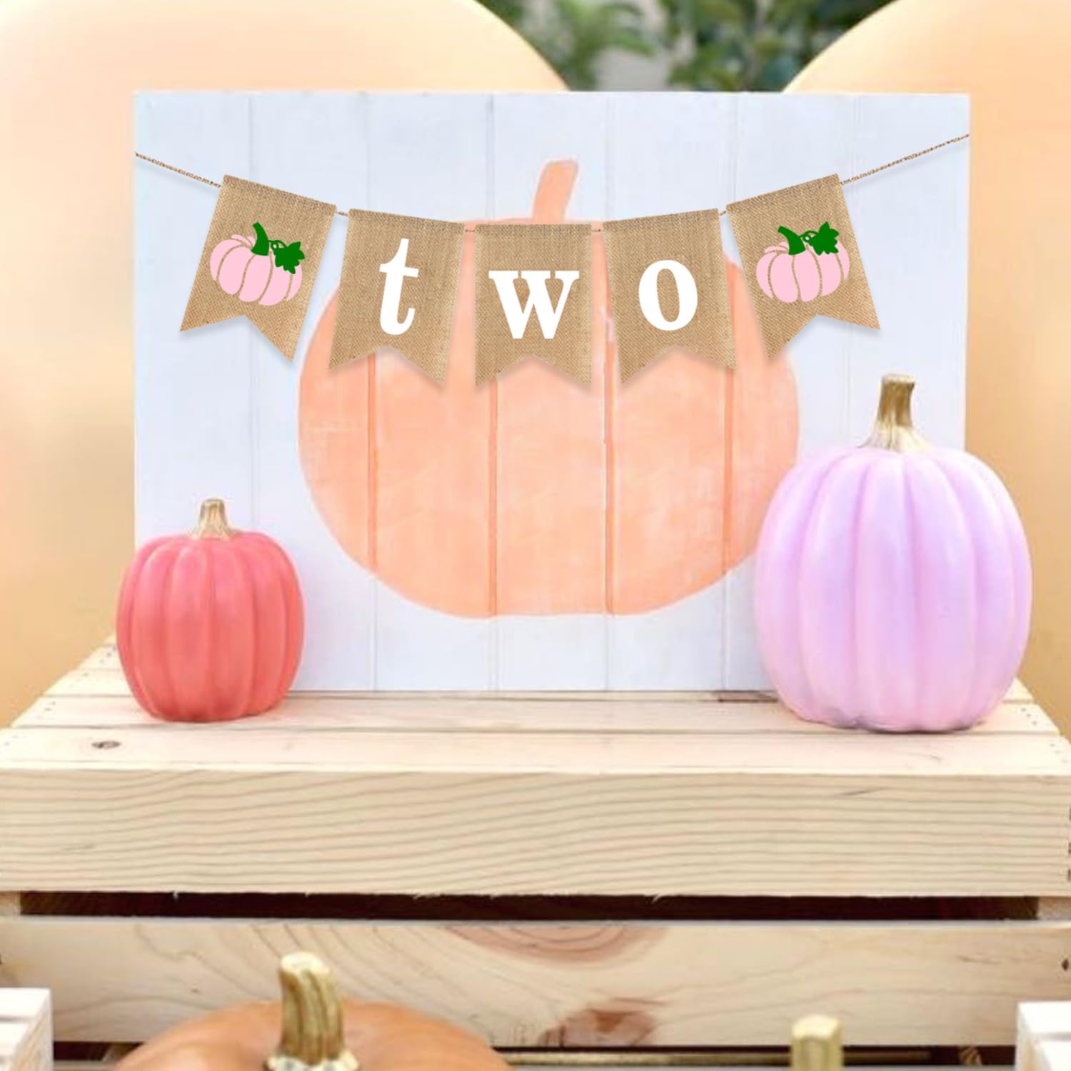 Two Pumpkin Banner 2nd Birthday Party Decoration Little Pumpkin Fall Autumn Second Birthday Highchair Burlap Garlands Pink