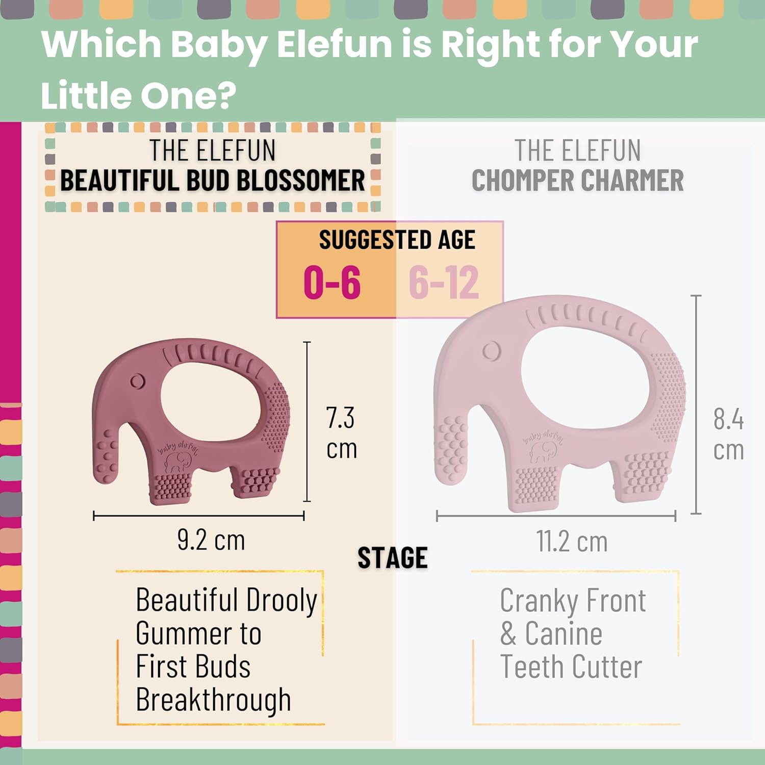 - “It’s absolutely perfect!” guarantee - a global movement: because it takes a village to raise a child we asked parents from every walk of life and village around the world to help us make Baby Elefun the fastest pain relieving baby teethers 0-6 months on the market. Get it. Absolutely adore it. Or we’ll buy it back and donate it to a children's charity where they have none. It really washes up that clean!