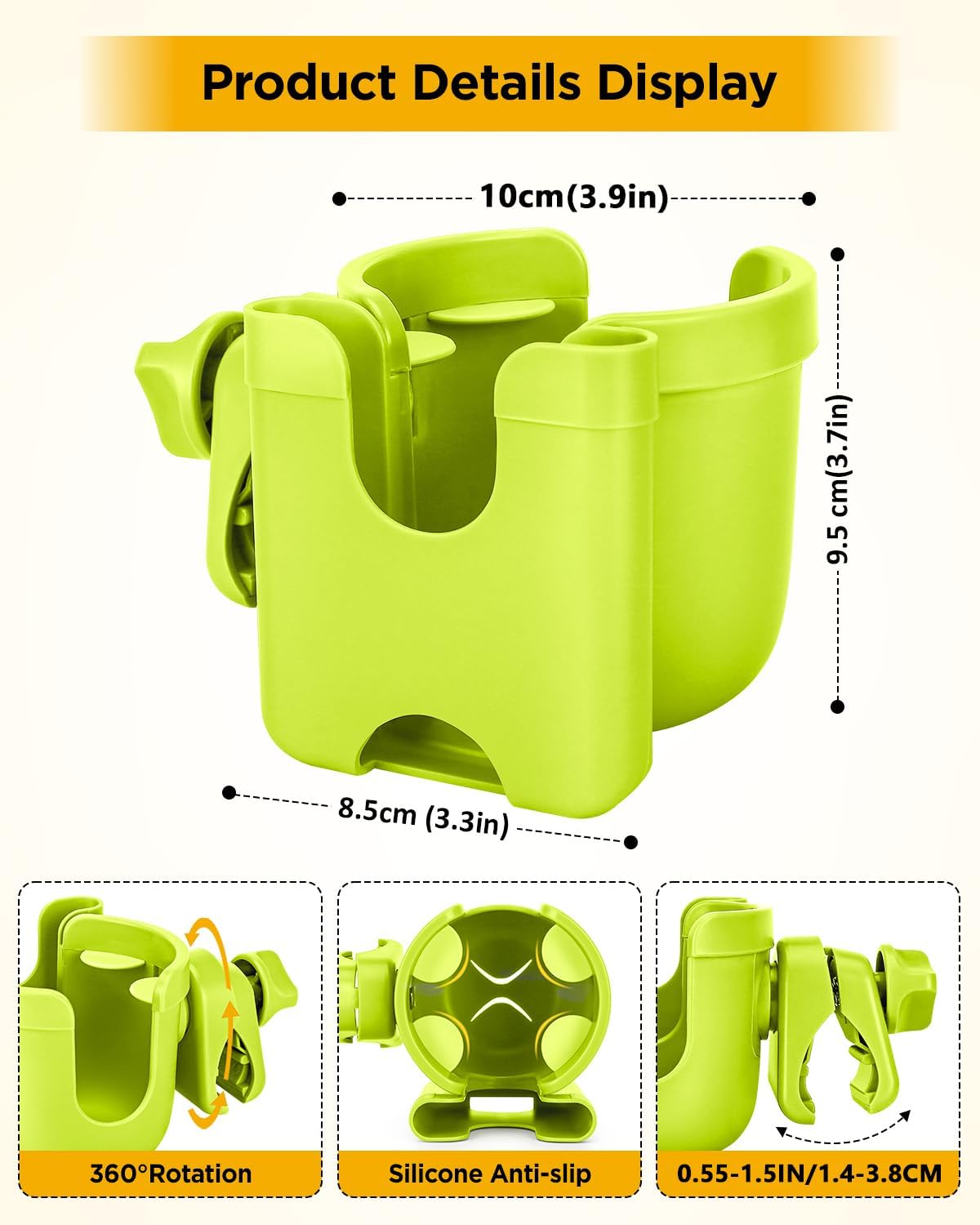 - What Makes Our Cup Holders So Popular : The anti-slip silicone gasket at the top of the stroller cup holder can not only avoid scratching your favorite cup, but also better stabilize the cup and prevent the cup from falling even on the bumpy road