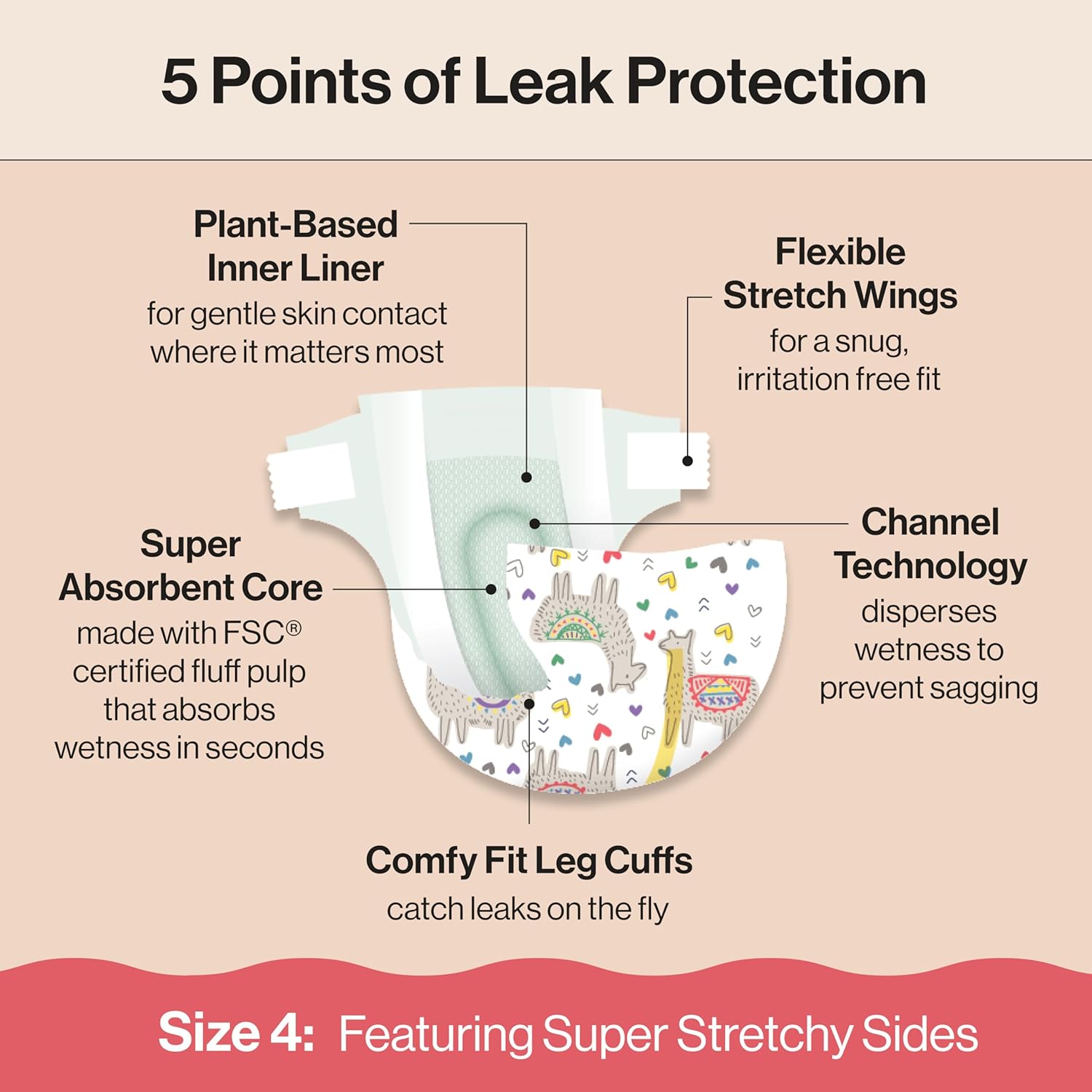 The Honest Company Clean Conscious Diapers for Delicate Skin, Up to 100% Leakproof Hypoallergenic Fragrance-Free Baby Diapers, Girl Prints, Super Club Box, Size 4 (22–37 lbs), 104 Count (Prints Vary)