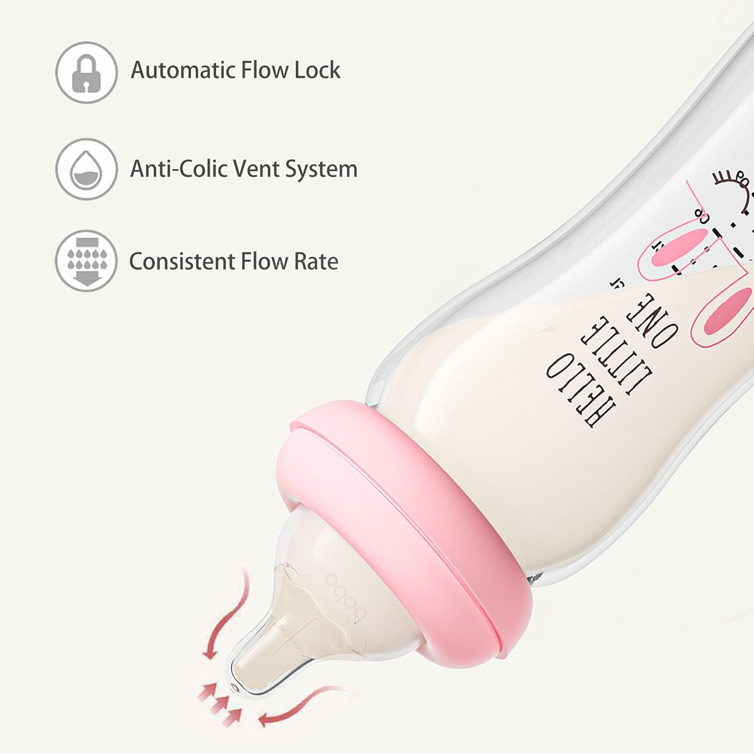 - Glass natural baby bottles with natural response nipples can control the speed of milk according to the baby suction, just like the natural sensation of breastfeeding.