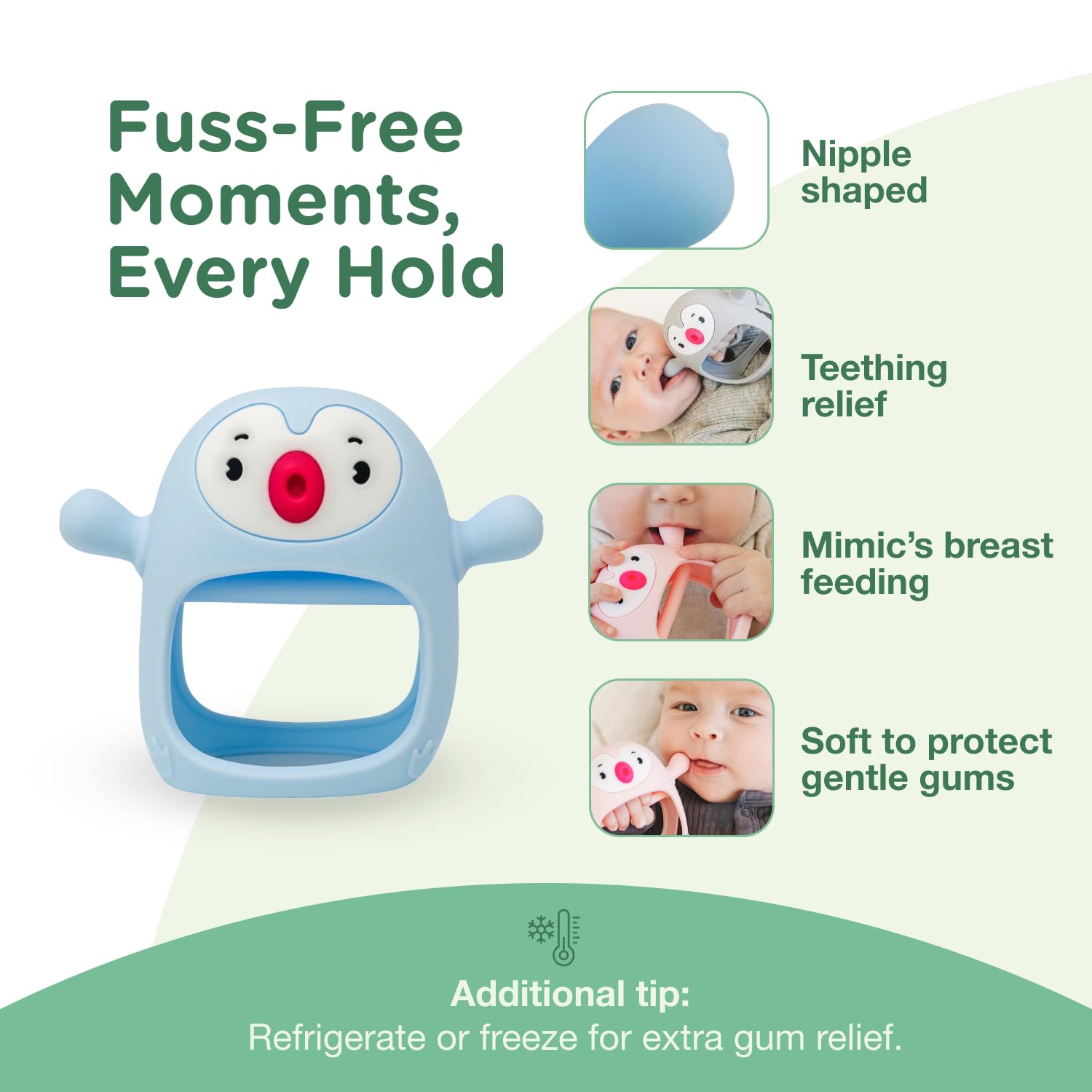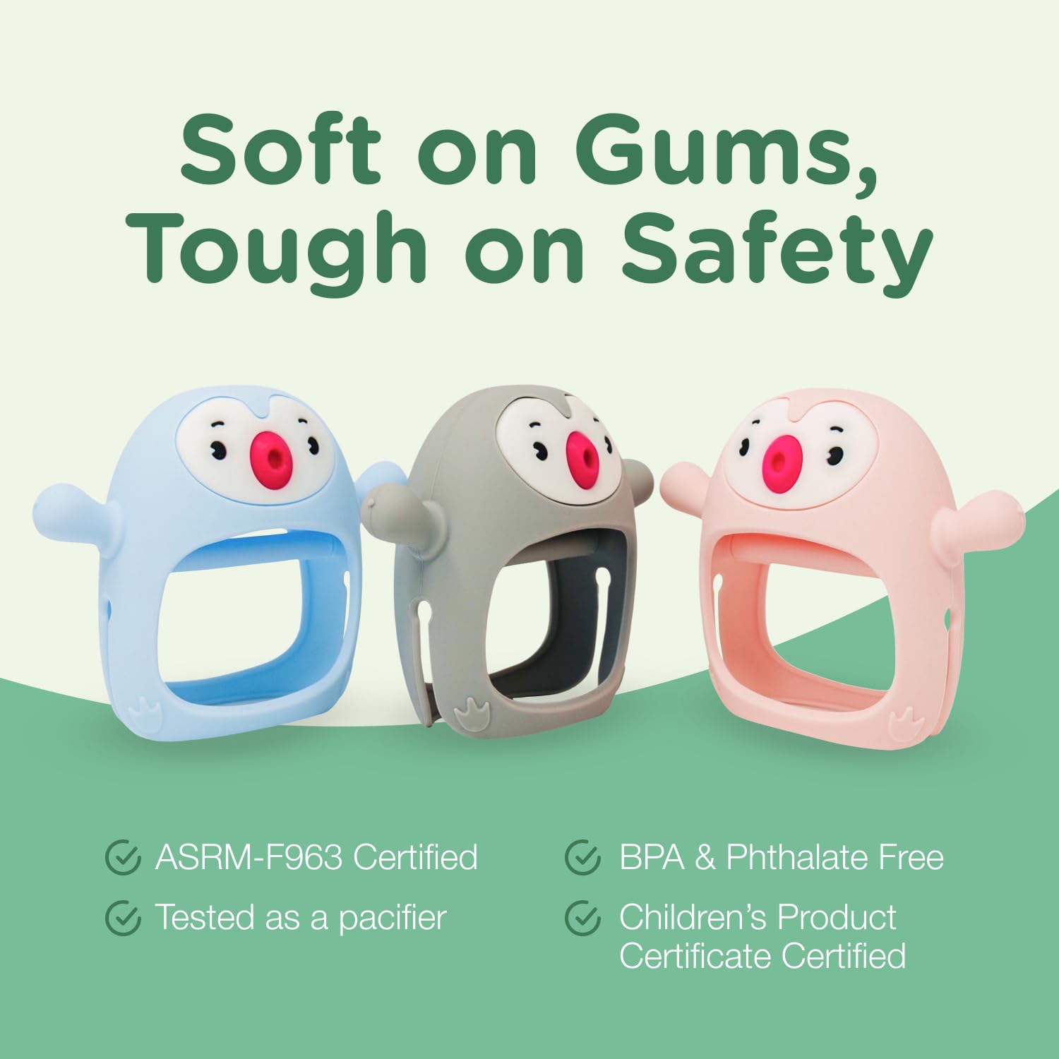 - Perfect Toy for Babies: Serving as an ideal mouthing toy, our teether promotes sensory exploration, aiding babies in learning about texture, taste, and temperature. The penguin buddy teether facilitates safe exploration during the crucial phase, building essential muscles for future activities like eating and speaking.