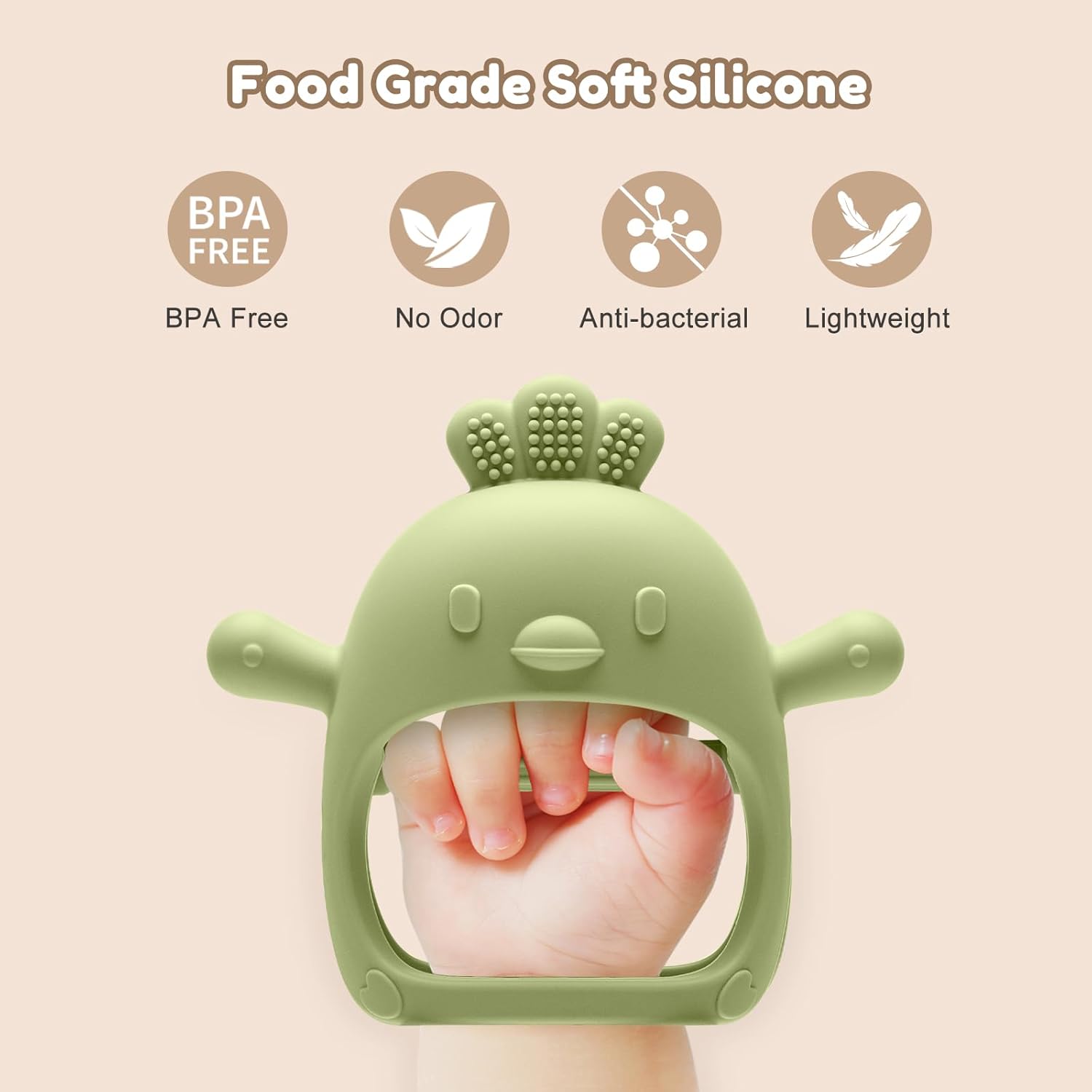 - Food Grade Teething Toy: This baby teether is made of soft silicone, BPA free and phthalate free, with no small parts, ensuring the safety of your teething baby while providing a strong and soft chewing experience
