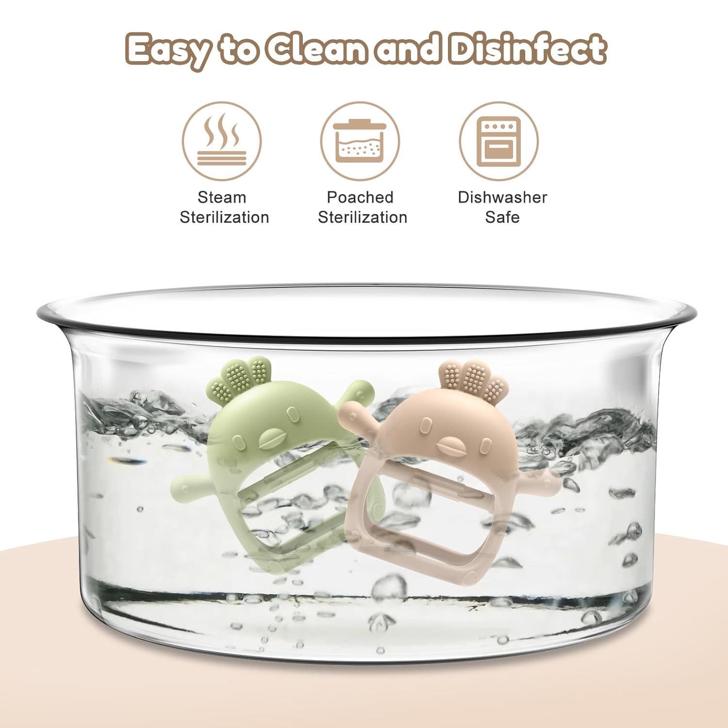 - Baby Toy Easy to Clean: Teething toys for babies 0-6 6-12 months should be completely cleaned before use to ensure the baby's safety. You can clean and disinfect this teething toy with steam, dishwasher or boiled water