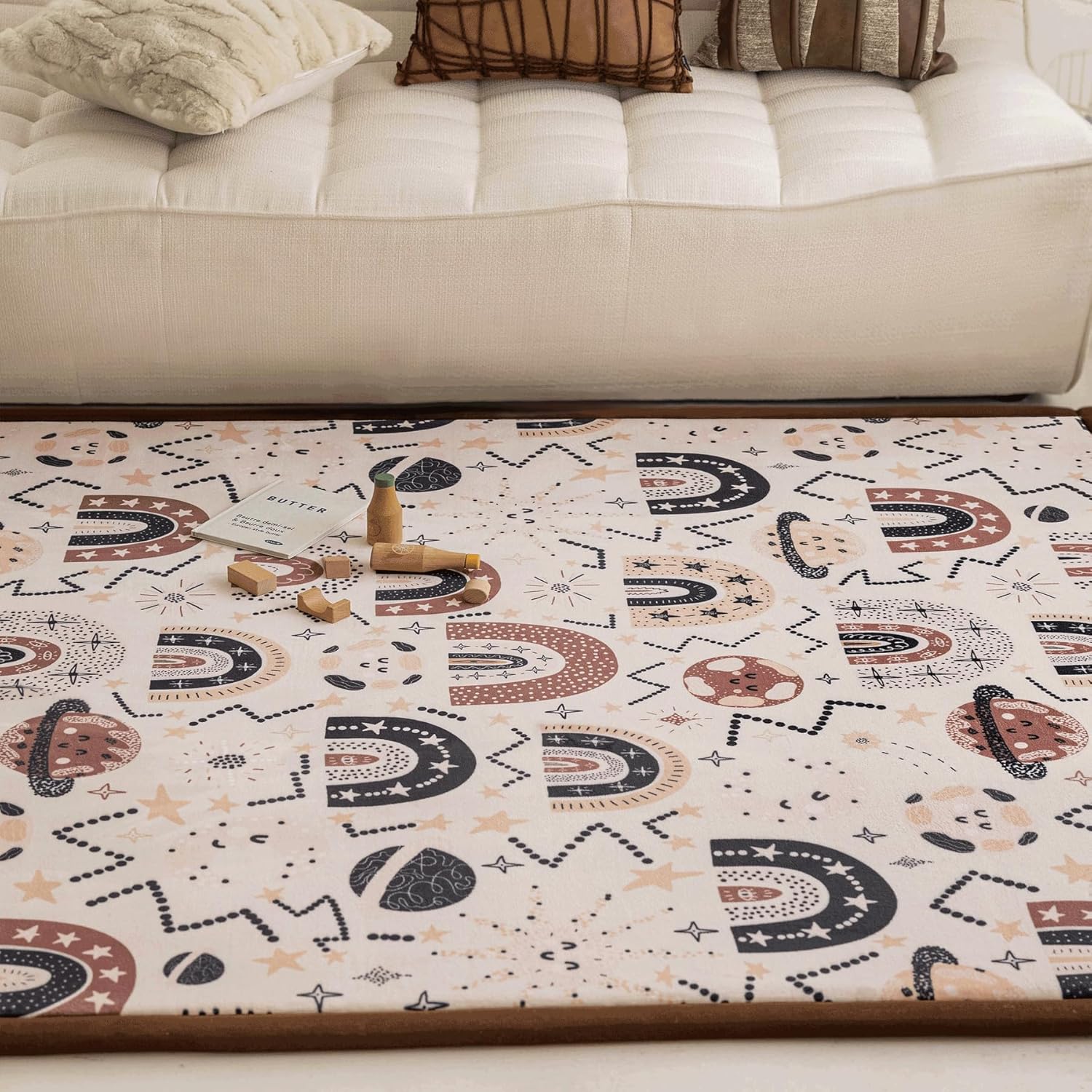 Loartee Rainbow Kids Play Mat - 1" Thick Baby Nursery Rug, Soft Crawling Mat for Toddlers and Tummy Time, Coral Velvet Memory Foam Rug, Brown, 50"x50"