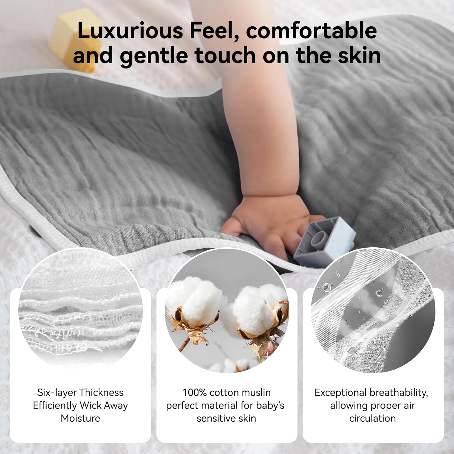 - The muslin burp cloths has six layers, which not only ensures breathability but also increases the water absorption area, can absorb liquid instantly.