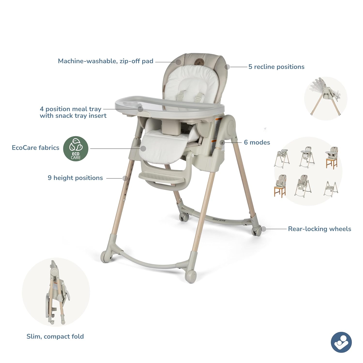 Maxi-Cosi Minla 6-in-1 High Chair for Babies & Toddlers, Portable Foldable Highchair, EcoCare Fabric, 9 Heights, 5 Reclines, 4 Tray Positions, Classic Oat