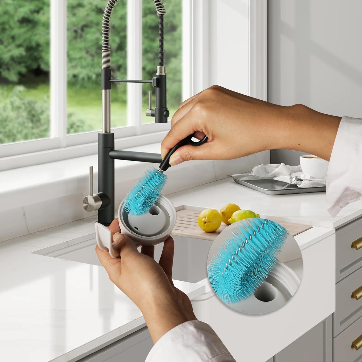 - 360-DEGREE CLEANING: The full-coverage bristles can achieve 360-degree cleaning without dead ends, and the flexible brush can easily extend into the narrow-mouth bottle. Whether it is turned clockwise or counterclockwise, our water bottle cleaning brush can clean quickly
