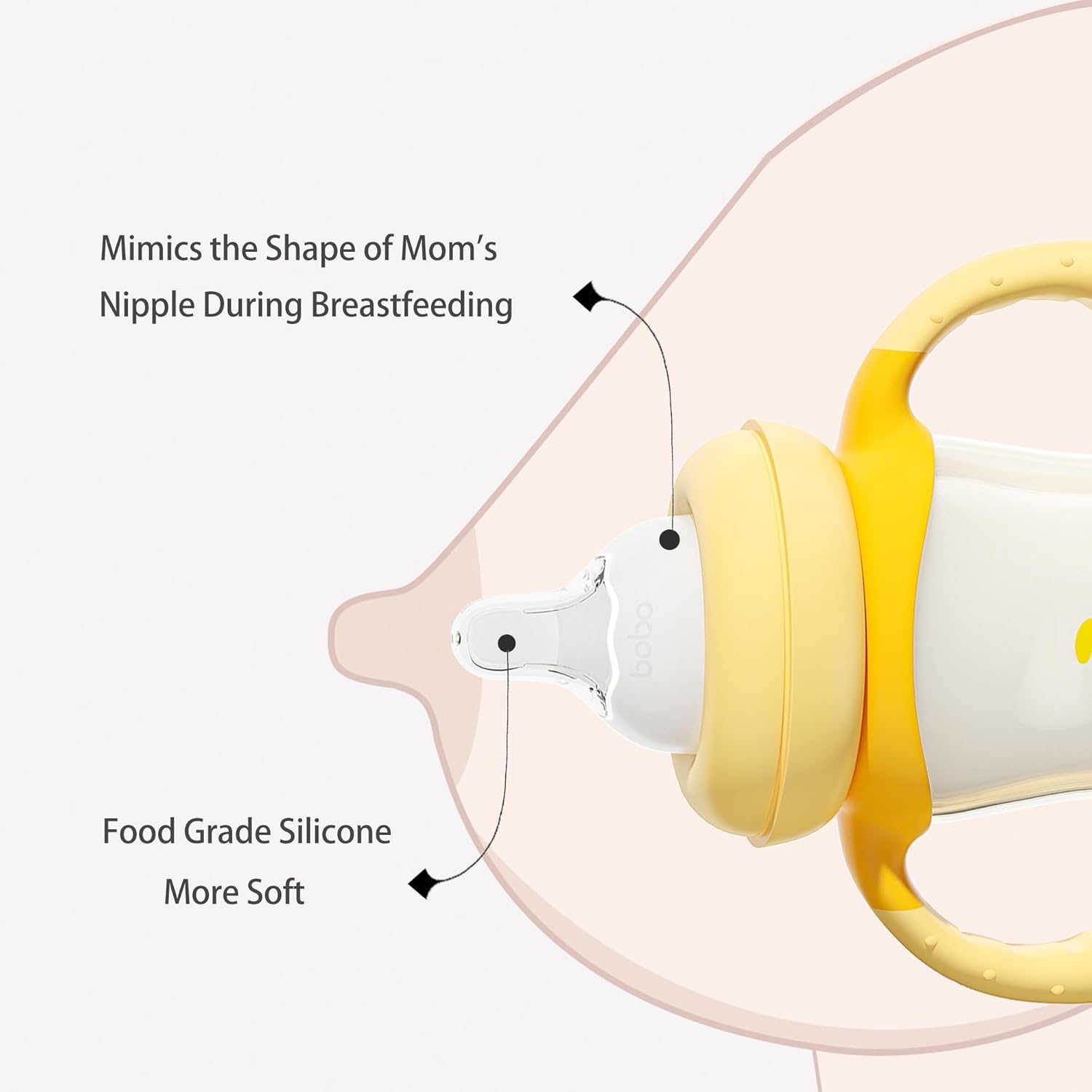 YOHKOH Natural PPSU Baby Bottle with Natural Response Nipple, Newborn Anti-Colic Baby Bottles with Handle, Wide Neck Mushroom Cap Baby Bottle (8.8oz (Pack of 4), Yellow1)