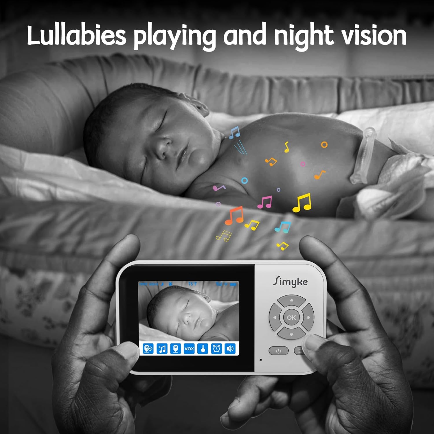 - 2-way Talk and Lullabies--Sometimes babies need to hear your voice to feel safe. Baby room monitor Support two-way audio, the baby can clearly hear your voice, Simyke baby monitor has 5 lullabies for you, You can play lullabies to lull your baby to sleep.