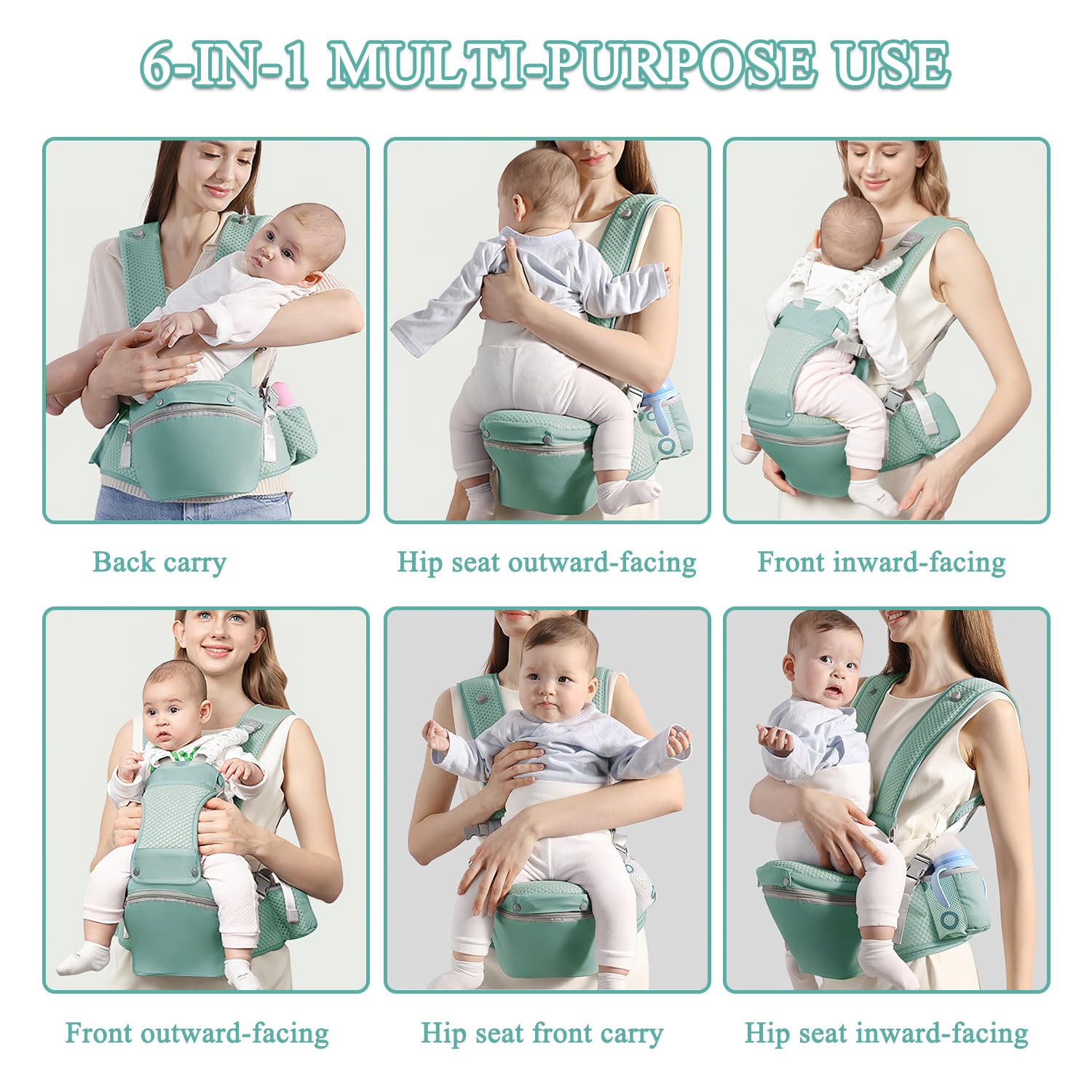 - 6-in-1 Multi-Purpose Use: A flexible design allows for multiple carrying positions: Front inward-facing, front outward-facing, back carry, hip seat front carry, hip seat outward-facing, and hip seat inward-facing. Perfectly adaptable as your child grows.