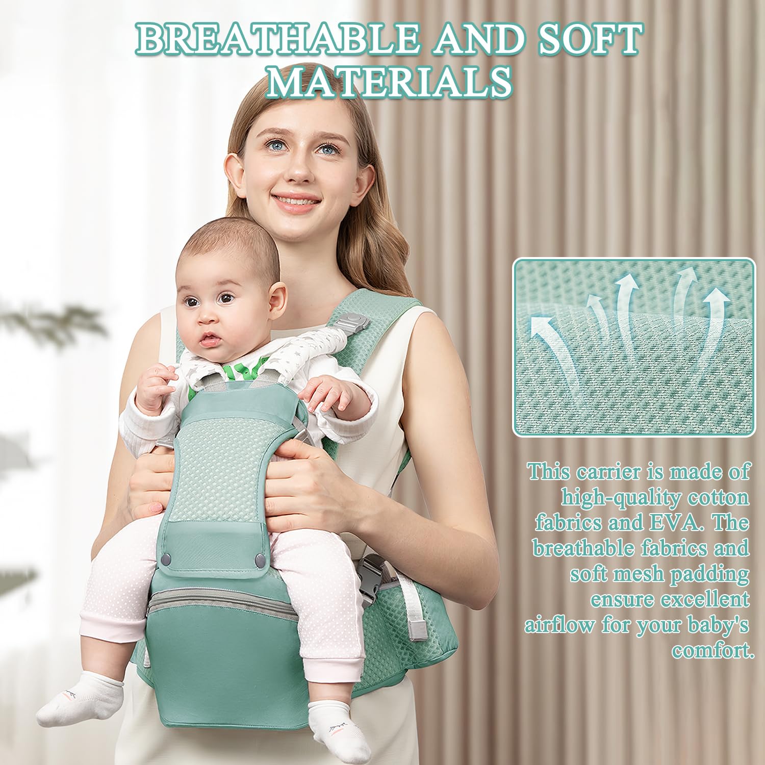 Baby Carrier with Hip Seat for Newborn to Toddler, 6-in-1 Ergonomic Infant Carrier for 0-36 Month Baby, All Positions Soft Breathable Mesh Wrap Carrier with Waist Stool, Easily Adjustable Baby Holder
