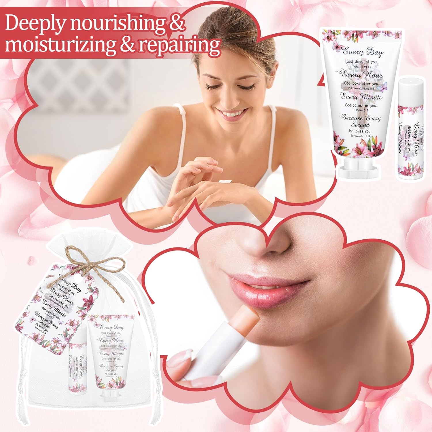 - Broad Scope of Use: bible hand cream and lip balm set are ideal for various occasions; You can use it at home with your family, or take it to school, work, vacation, outdoor gatherings, and so on; It is also an ideal gift choice for family, friends, classmates, and even during holidays, birthday celebrations, and anniversary events