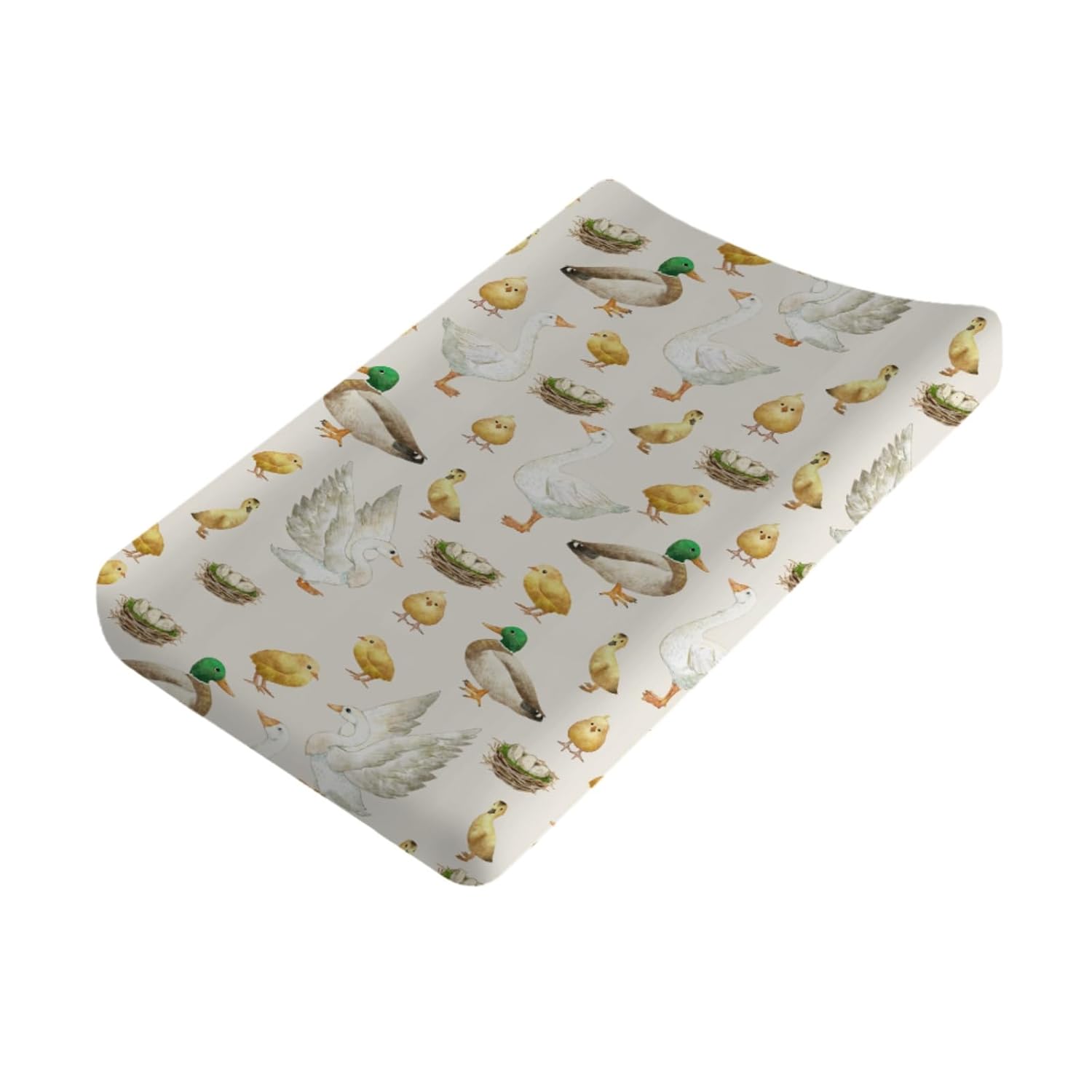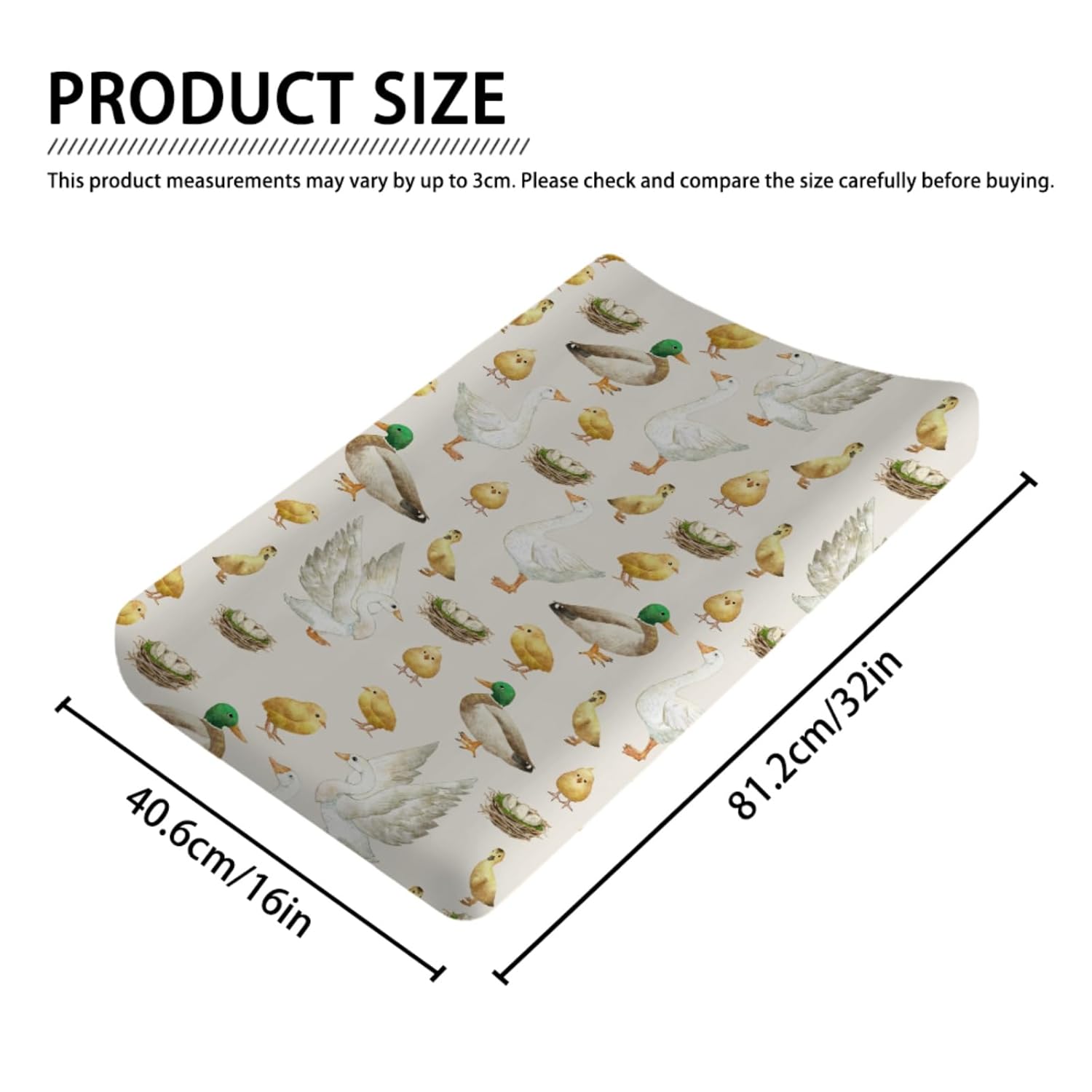 Watercolor Farm Birds Ducks Eggs Baby Changing Pad Cover Sheets for Boy Girl 32''x16'' Farm Animals Unisex Fitted Changing Table Sheets Comfort Soft Breathable Nursery Change Table Mats