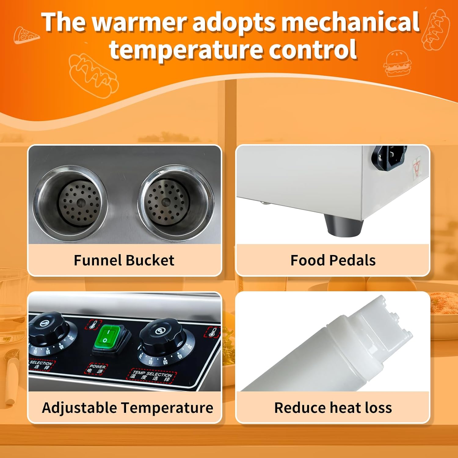 - Electric cheese warmer adopts independent temperature buttons to control the sauce temperature, with independent heating controller and indicator light, it can control the temperature accurately, the temperature control range is 86 - 185℉ (30-85℃), you can adjust the temperature of your sauce according to your own needs independently, the water in the water tank will be heated up to the temperature of the sauce you need quickly.