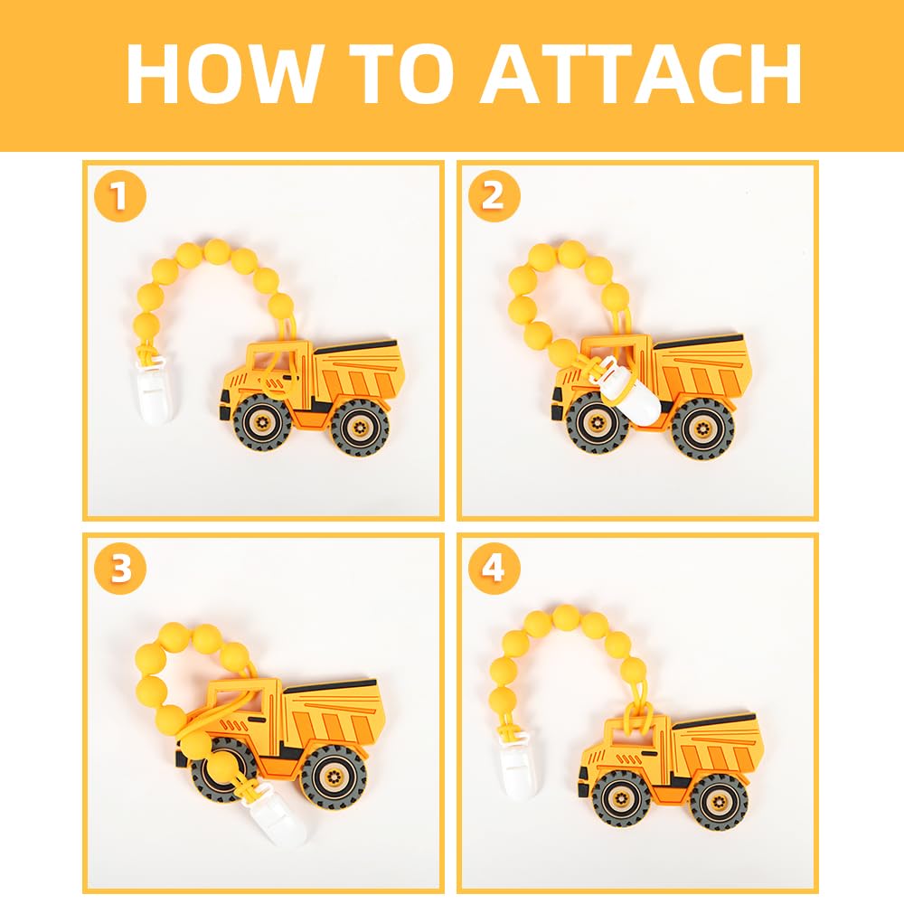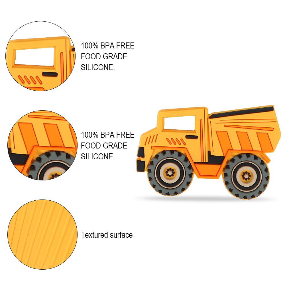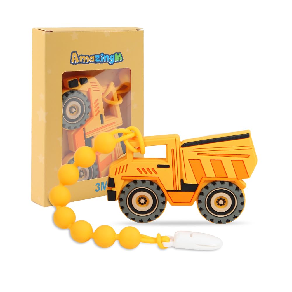 Baby Food Grade Silicone Carrier Vehicle Teether Toy with Pacifier Clip Holder,Teething Toys Gift Set for 3 Months+ Boys and Girls,Freezer Safe,BPA Free. (Dump Truck)
