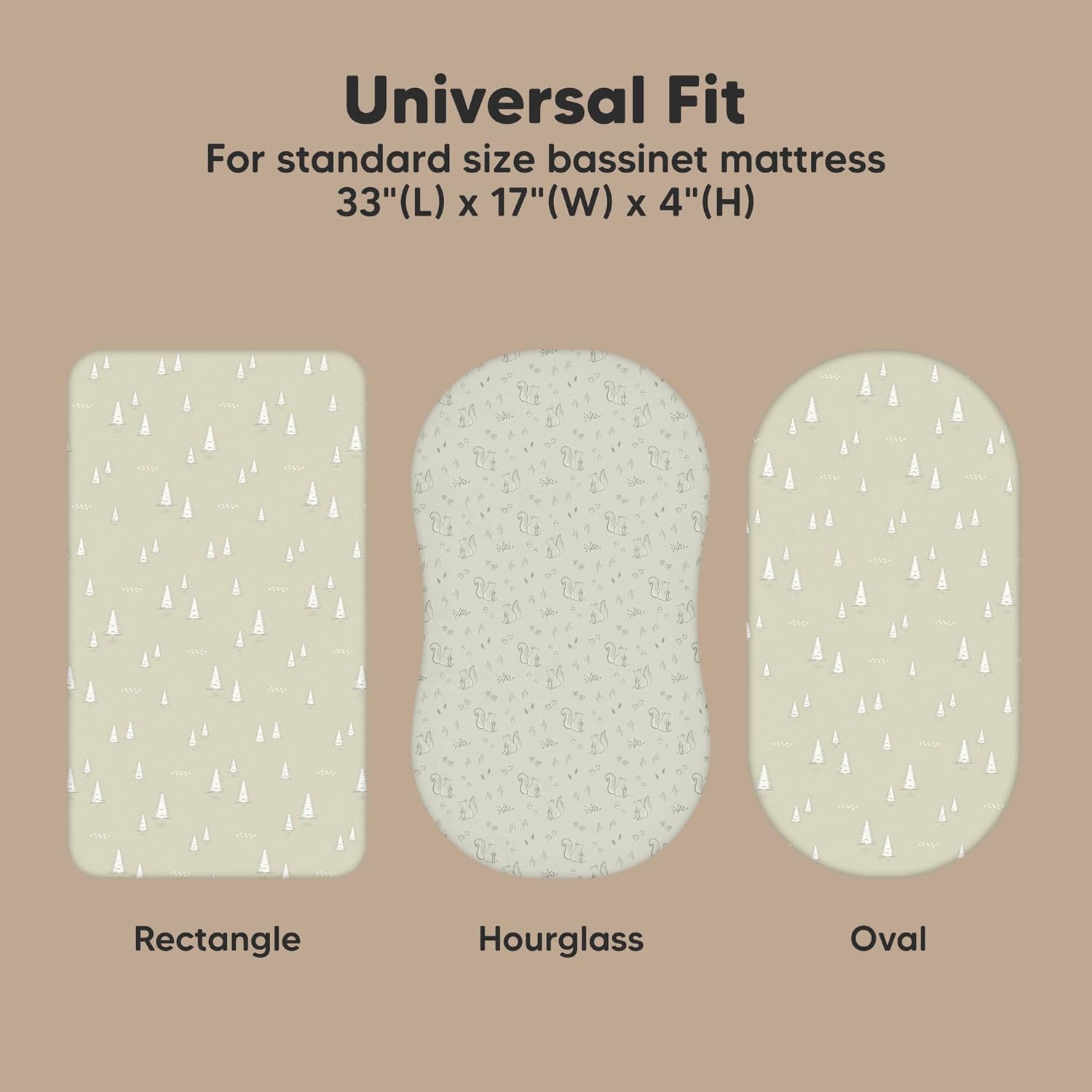 - 2-Pack Bassinet Fitted Sheets - KeaBabies Soothe Bassinet Mattress Sheets, sized at 33" x 17" with a depth of up to 4", provide a universal fit for all bassinet mattress pad types. They can be used as hourglass, oval, rectangle bassinet sheets.