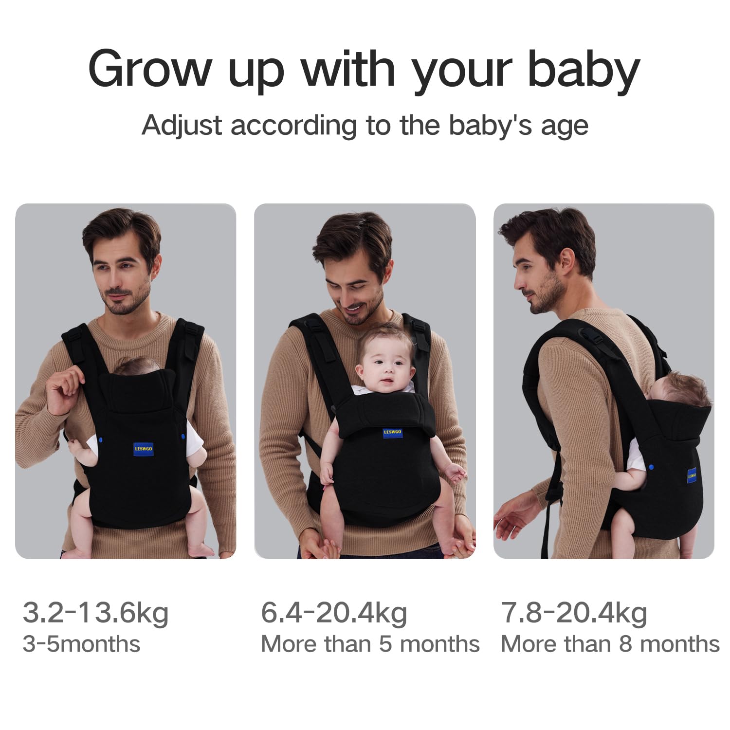 - Easy to Use:Cangureras para bebes essentials carrier support features an easy-to-adjust fastener buckle system, allowing you to wear it quickly and easily. The baby carrier supports a backpack or front facing position