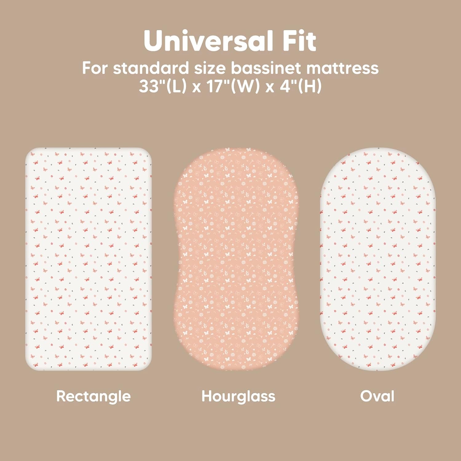 2-Pack Baby Bassinet Sheets Girl, Boy - 33x17 Viscose Derived from Bamboo Bedside Mattress Fitted Bassinet Sheets, Compatible with Halo Bassinest Swivel Sleeper, Baby Delight, Graco(Butterflies)