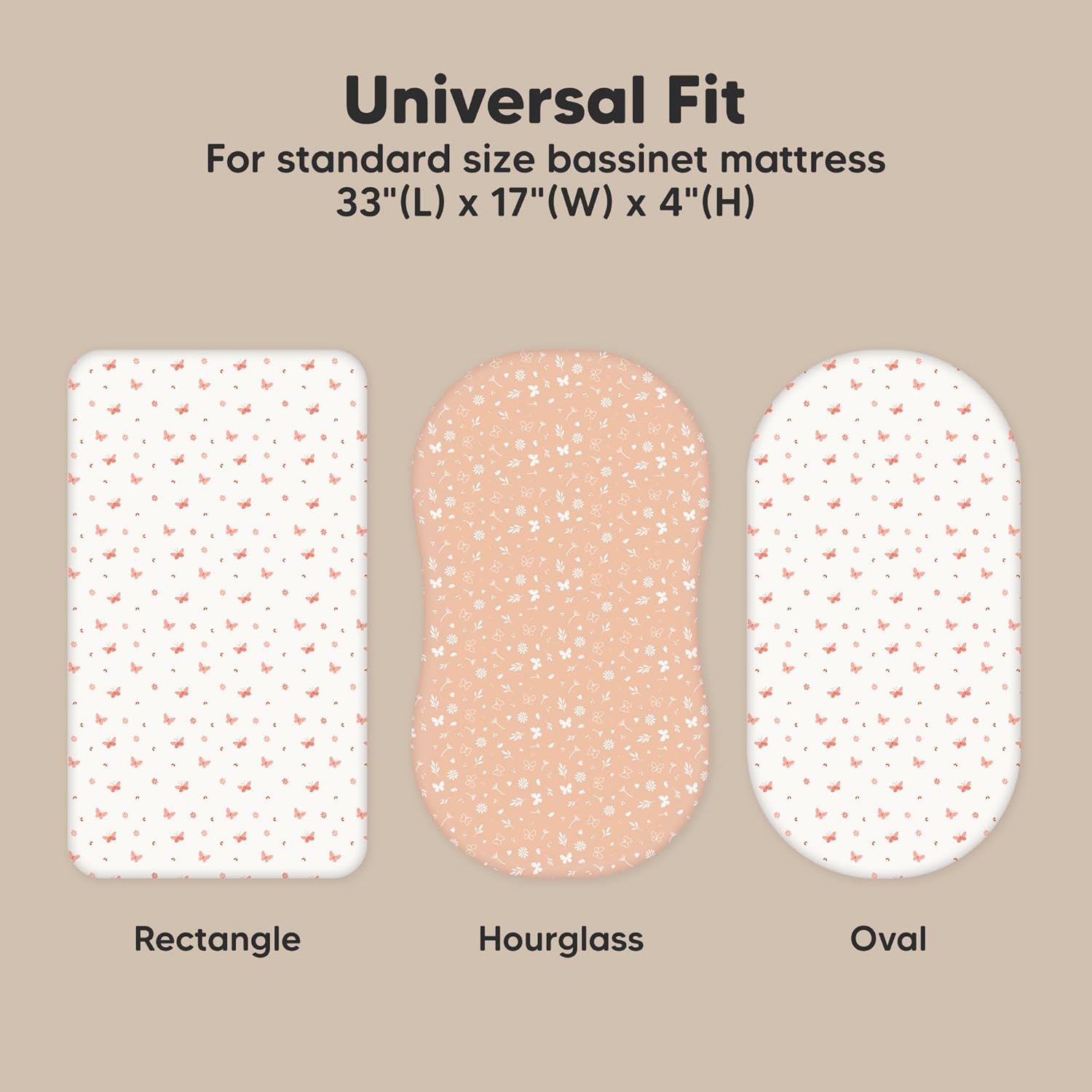 - 2-Pack Bassinet Fitted Sheets - KeaBabies Soothe Bassinet Mattress Sheets, sized at 33" x 17" with a depth of up to 4", provide a universal fit for all bassinet mattress pad types. They can be used as hourglass, oval, rectangle bassinet sheets.