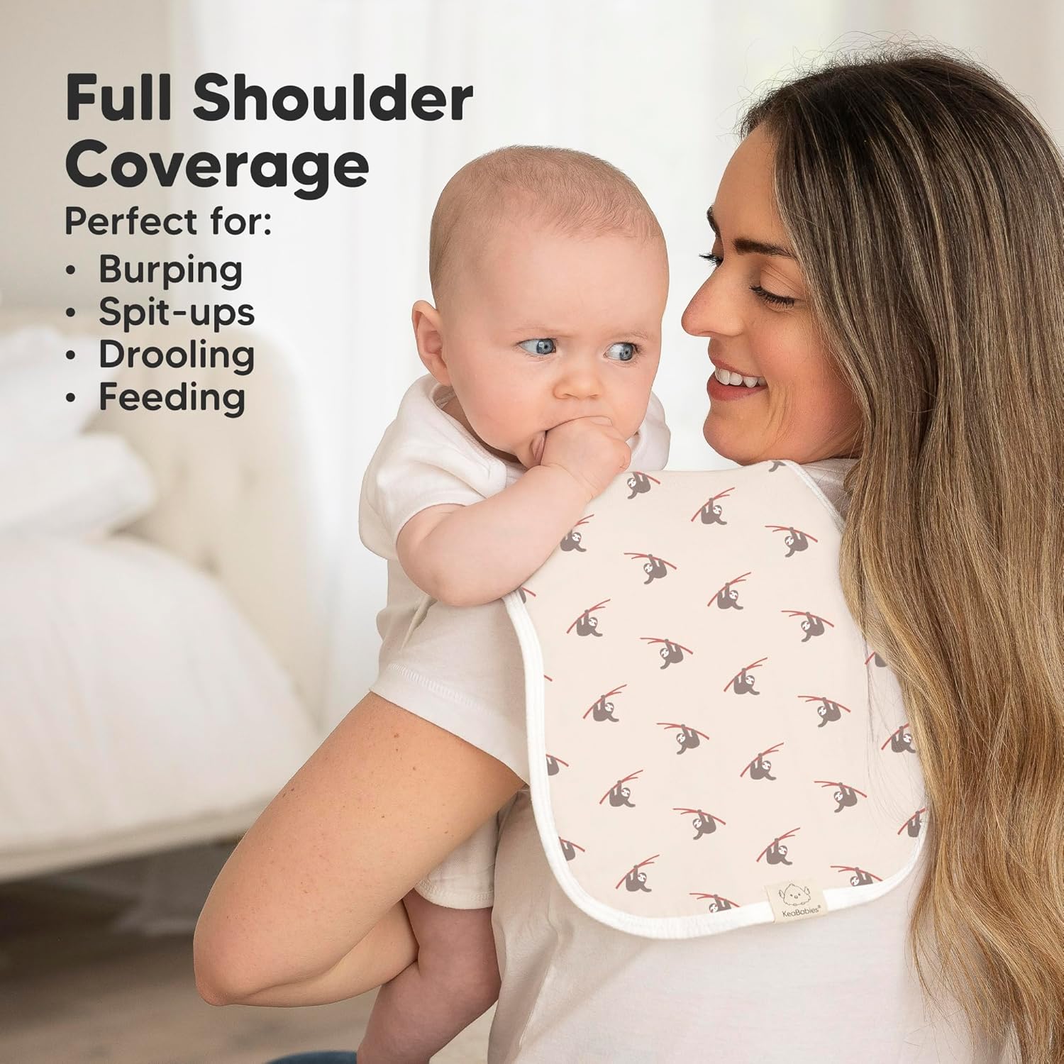 - Maximum Shoulder Coverage - Our burping cloths for babies are specially designed in figure-8 to ensure a secure fit, preventing the burp rags from slipping. Measuring 21" x 10", this neutral burp cloth provides ample coverage for your shoulders.
