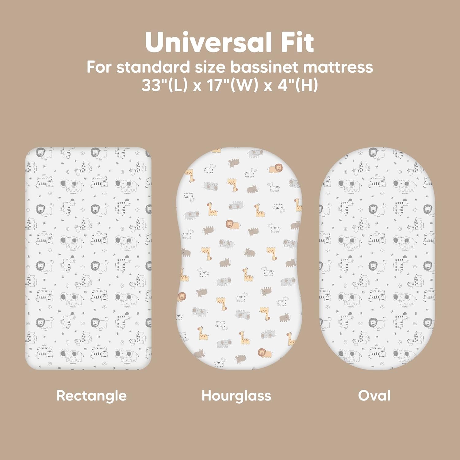 - 2-Pack Bassinet Fitted Sheets - KeaBabies Soothe Bassinet Mattress Sheets, sized at 33" x 17" with a depth of up to 4", provide a universal fit for all bassinet mattress pad types. They can be used as hourglass, oval, rectangle bassinet sheets.