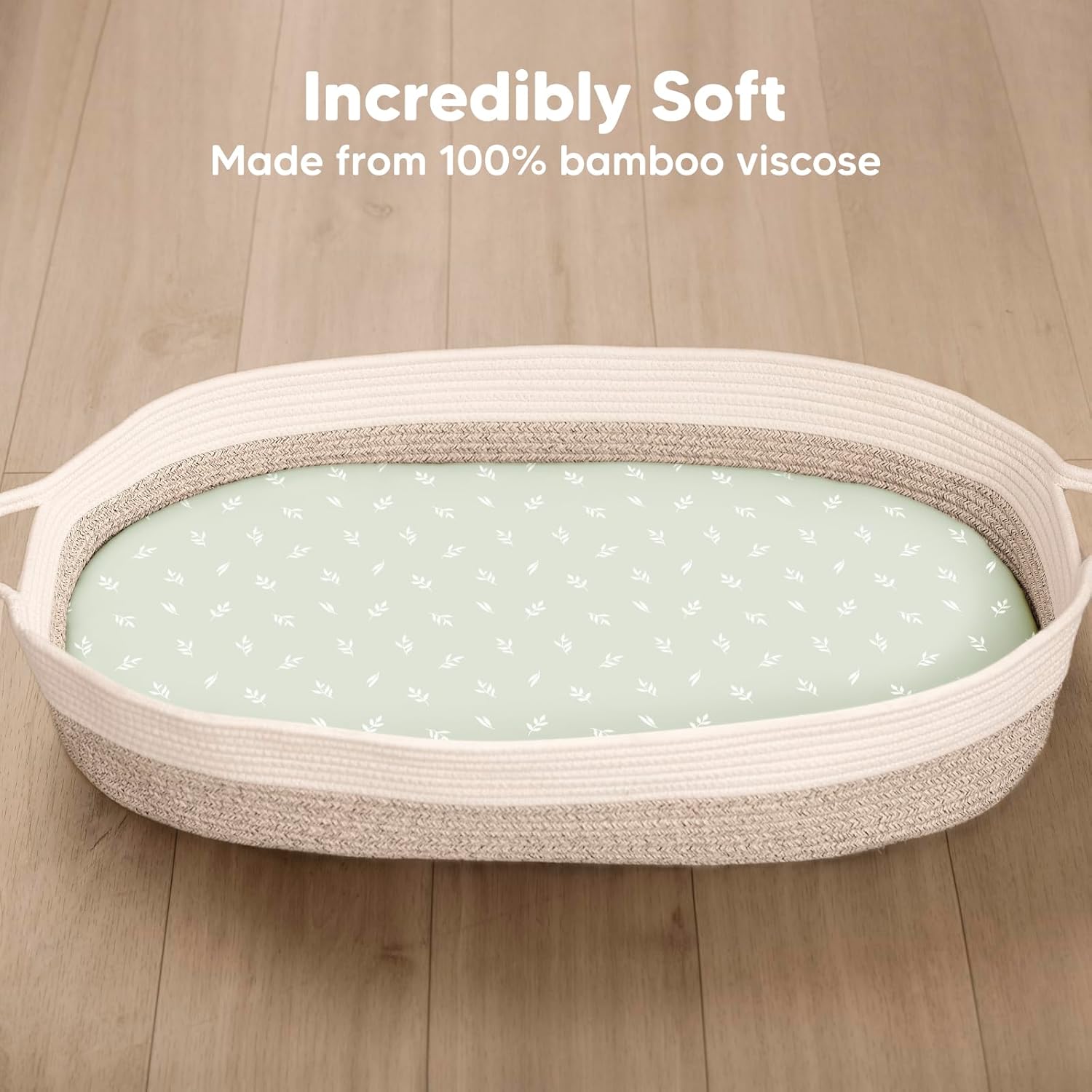 2-Pack Baby Bassinet Sheets Girl, Boy - 33x17 Viscose Derived from Bamboo Bedside Mattress Fitted Bassinet Sheets, Compatible with Halo Bassinest Swivel Sleeper, Baby Delight, Graco (Herb)