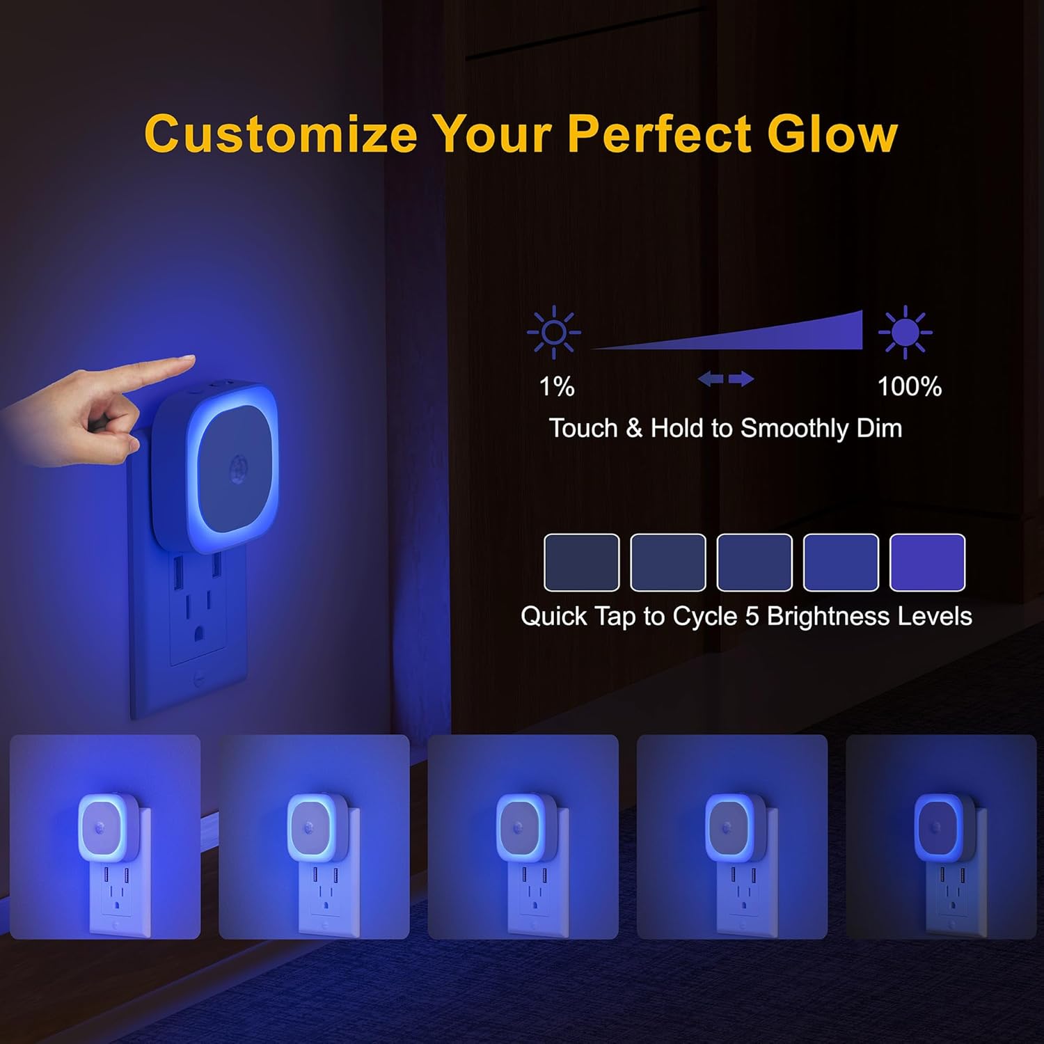 2 Pack Plug in Night Light with Motion Sensor & Dusk to Dawn Sensor, 3 Sensor Modes, Blue Night Lights Plug into Wall, Dimmable Nightlight for Bathroom, Bedroom, Indoor