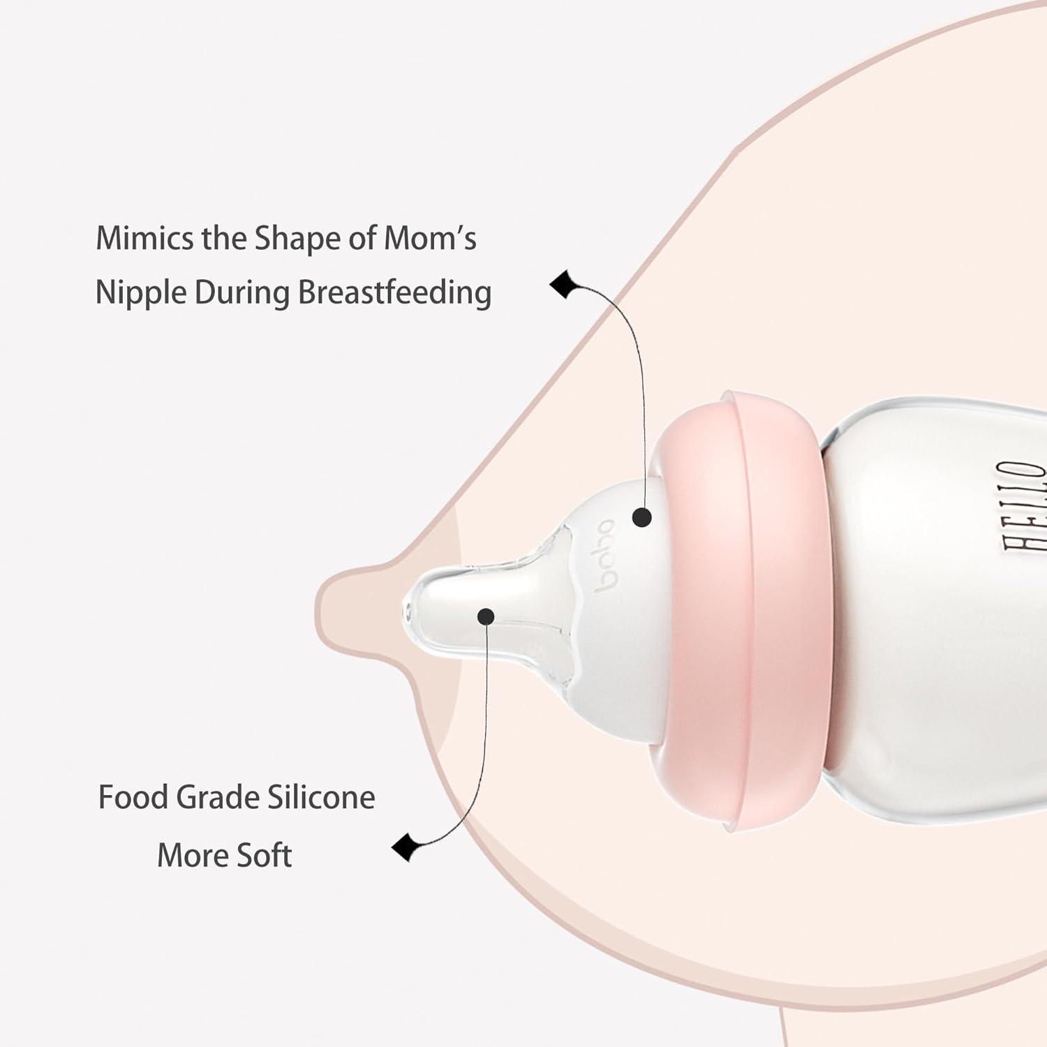 - Glass natural baby bottles with natural response nipples can control the speed of milk according to the baby suction, just like the natural sensation of breastfeeding.